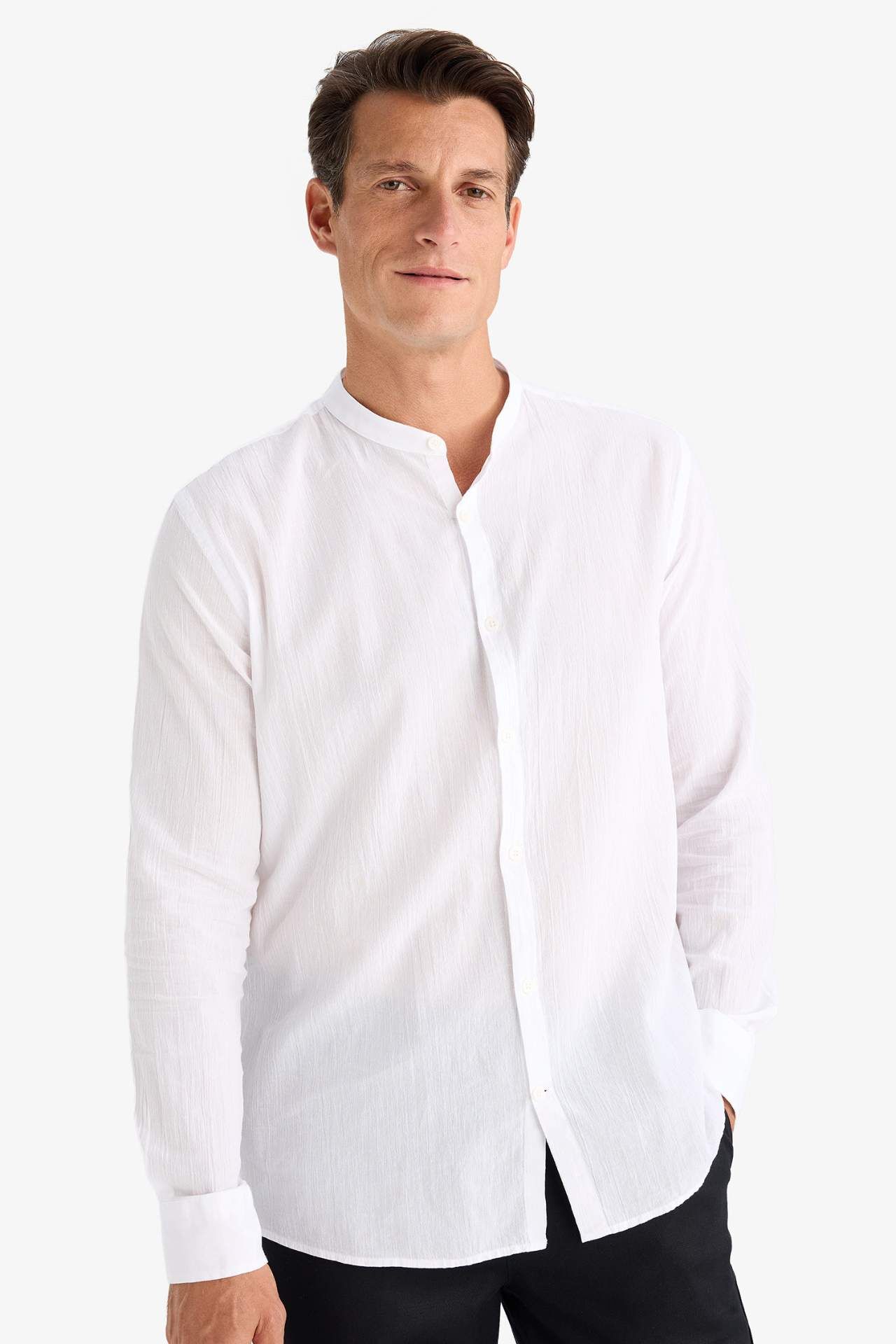 DeFacto DeFactoFit Regular Fit Dik Yaka Pamuklu Uzun Kollu Gömlek C7584AX24SMWT55