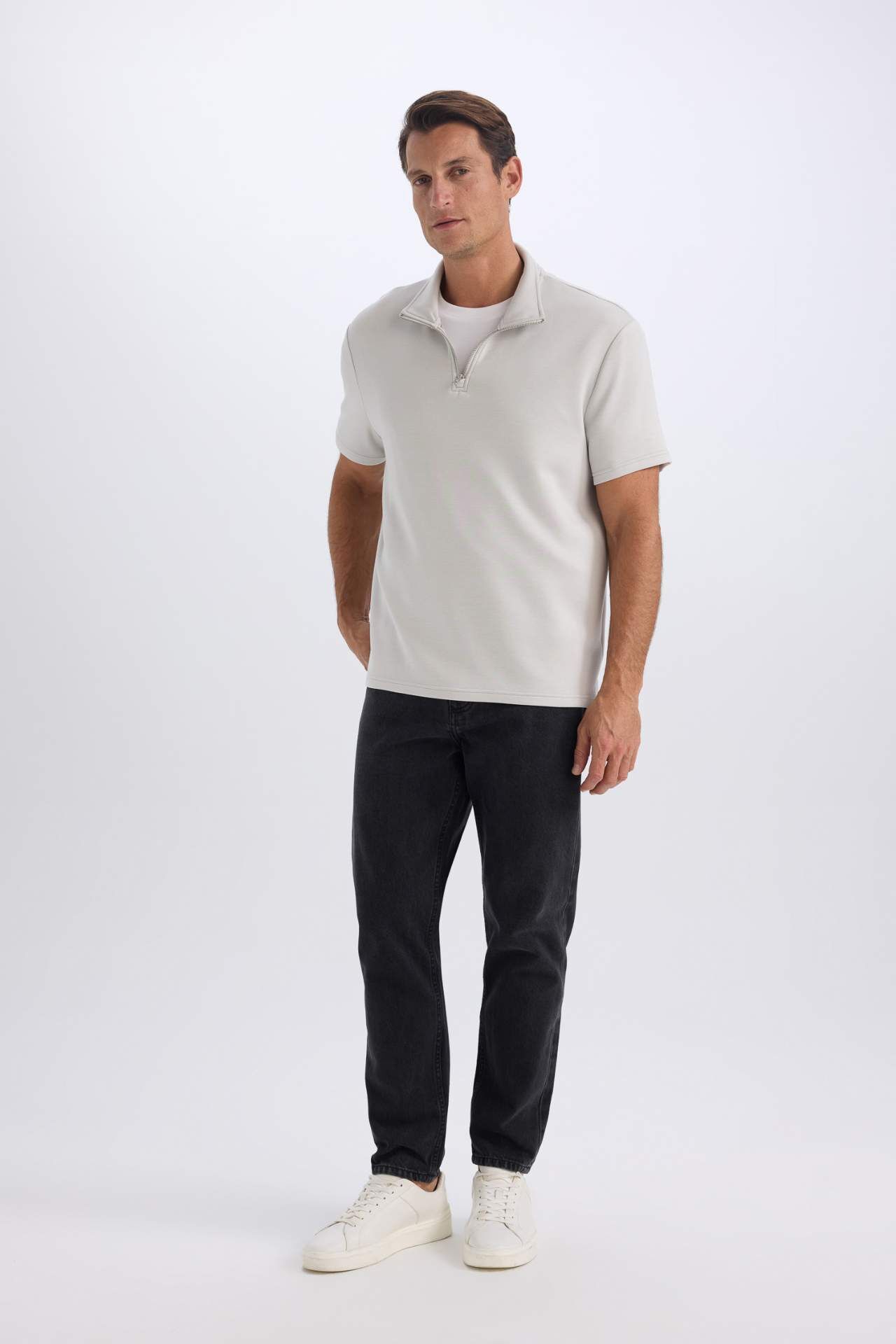 DeFacto Regular Fit Dik Yaka Yarım Fermuarlı Ağır Kumaş Kısa Kollu Tişört B6502AX25SPGR94