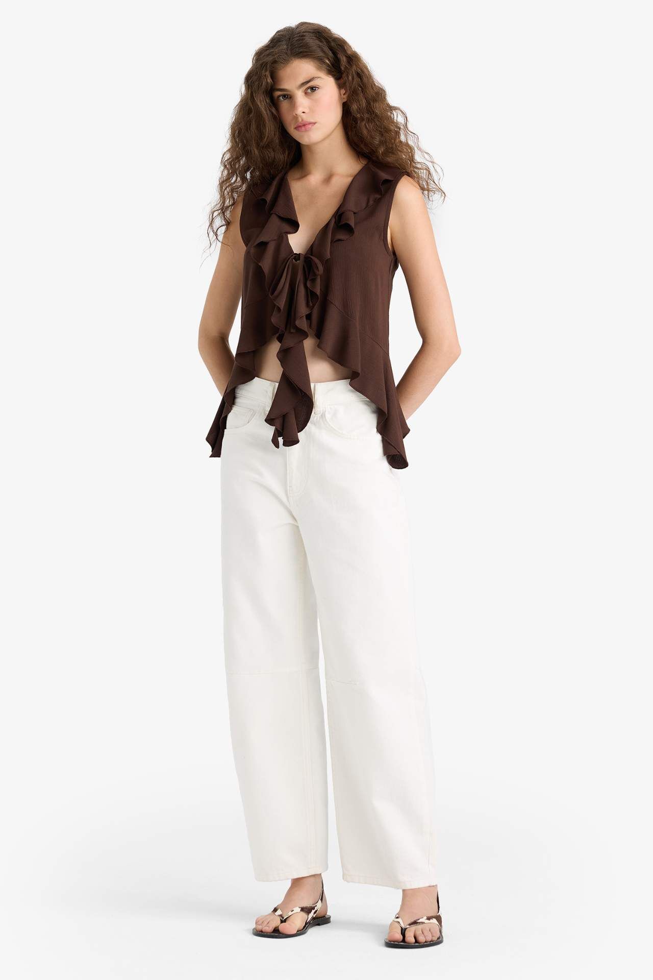 Regular fit dokulu kolsuz bluz, hafif dokusu ve rahat kesimiyle şık bir günlük kullanım sunar. Kolsuz tasarımıyla sıcak havalar için idealdir. Farklı kombinlerle kolayca stil tamamlayabilir. Viskoz 100%,Viskoz 100%,Viskoz 100%,Viskoz 100%,Viskoz 100%,Viskoz 100%,Viskoz 100% Manken Bedeni: Göğüs: 84 Boy: 1,76 Basen: 88 Bel: 61