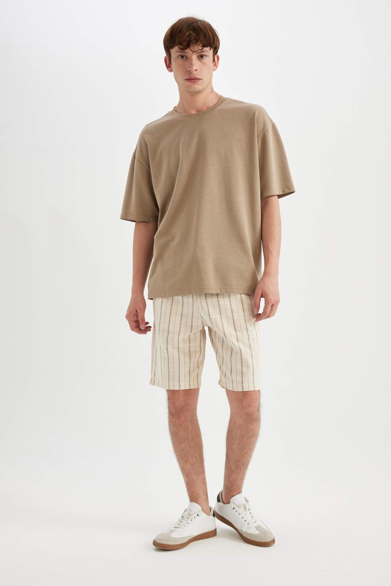 DeFactoFit Regular Fit Esnek Bantlı Paça Keten Görünümlü Bermuda