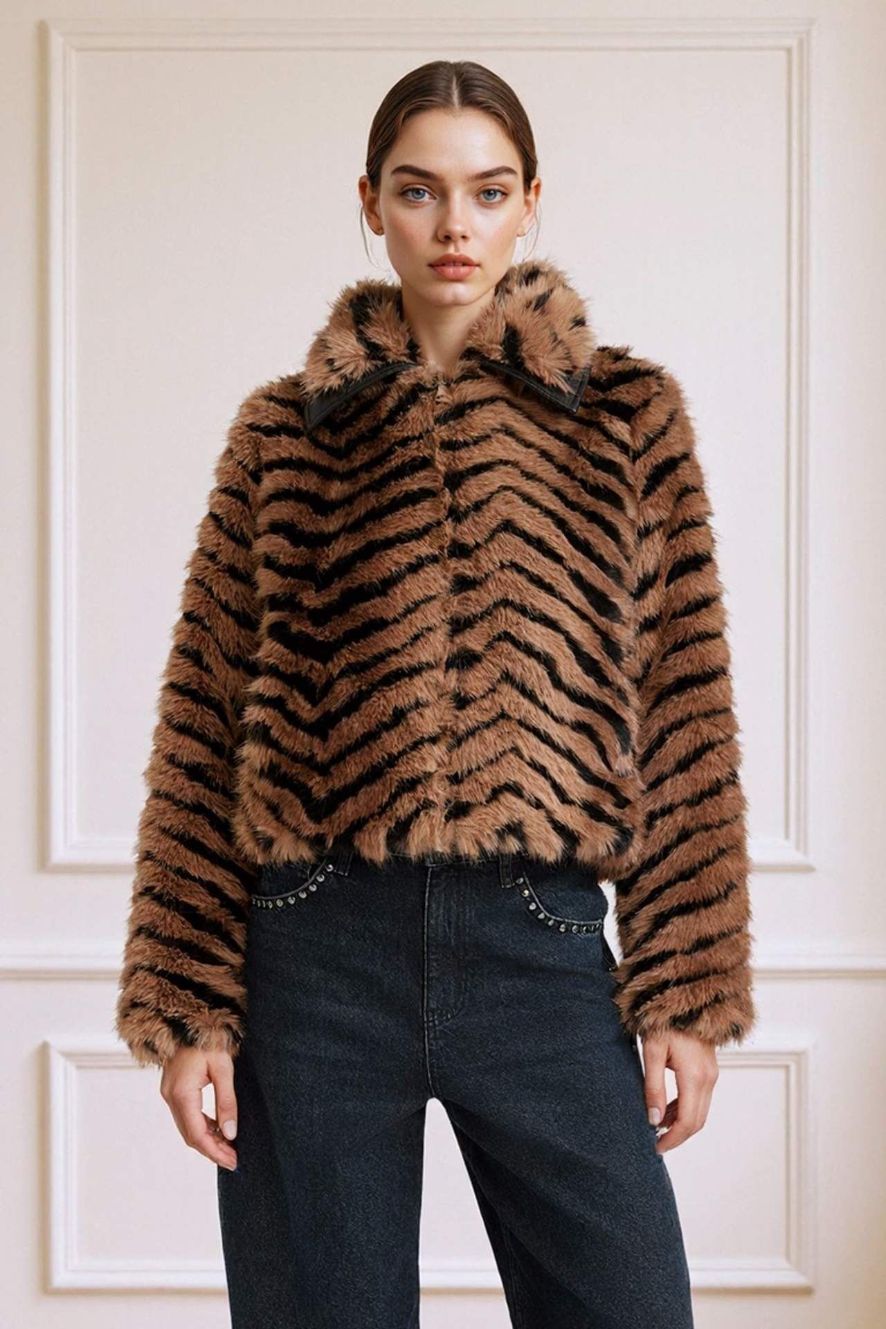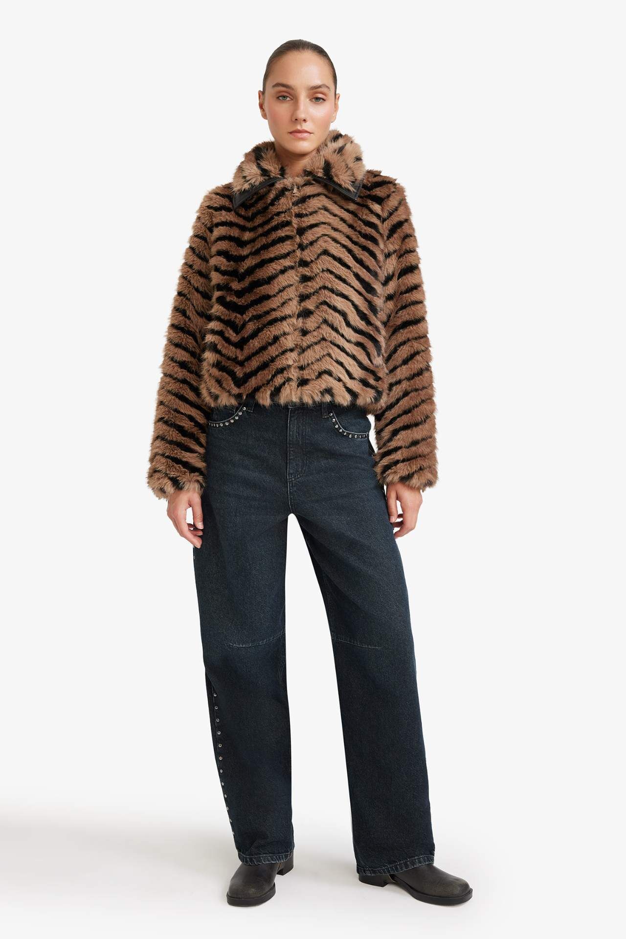 Regular Fit Fermuarlı Kısa Suni Kürk