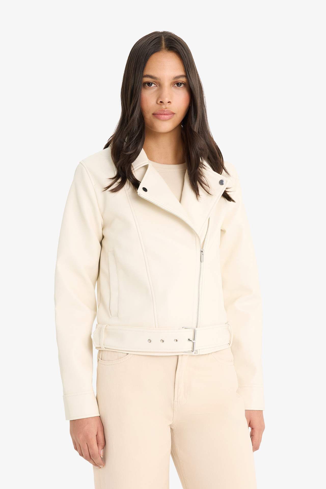Regular Fit Fermuarlı Suni Deri Ceket Mont
