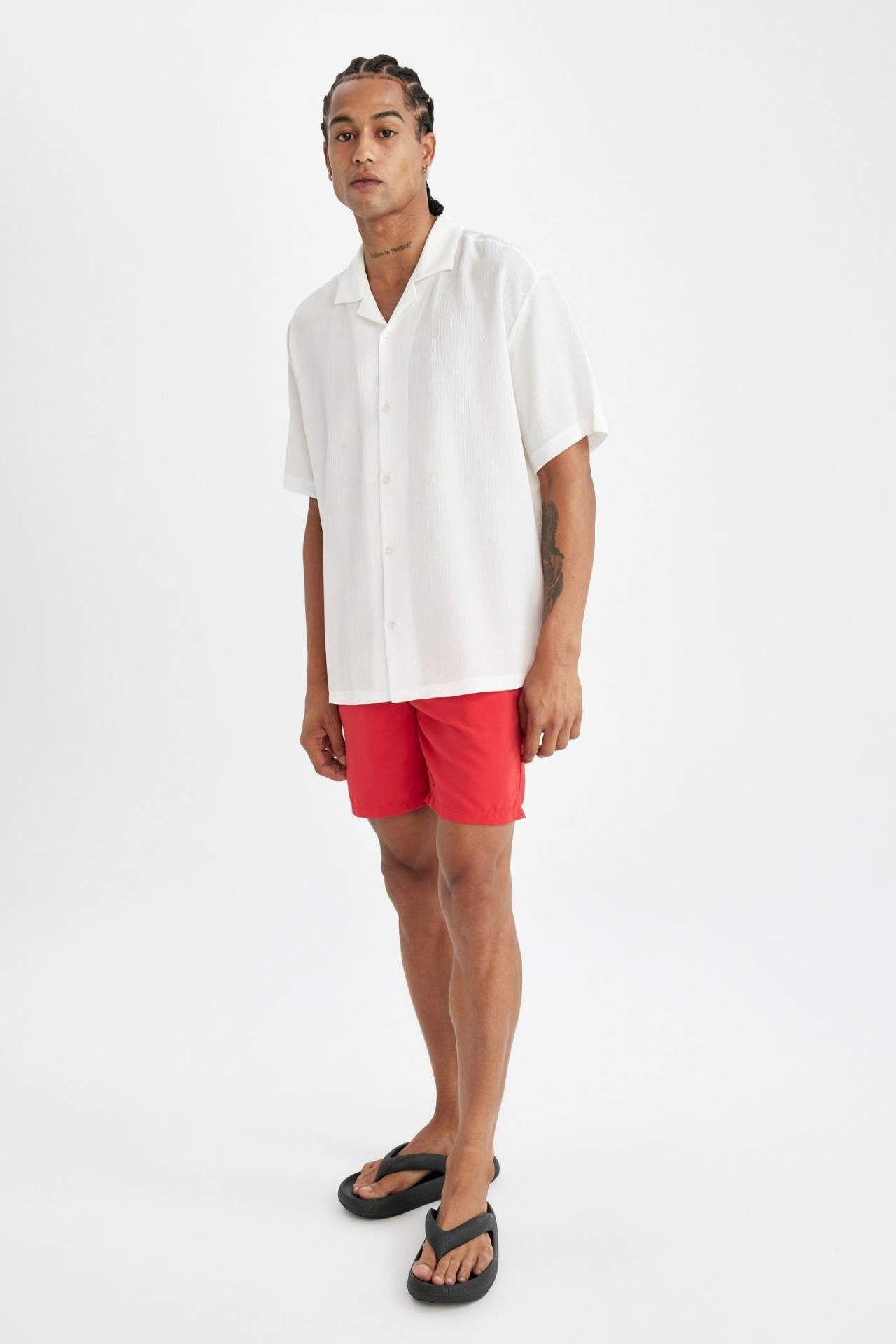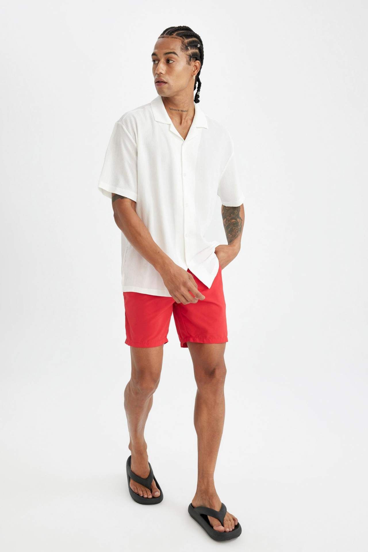 DeFactoFit Regular Fit File Astarlı Diz Üstü Deniz Şortu N0132AZ24HSRD70