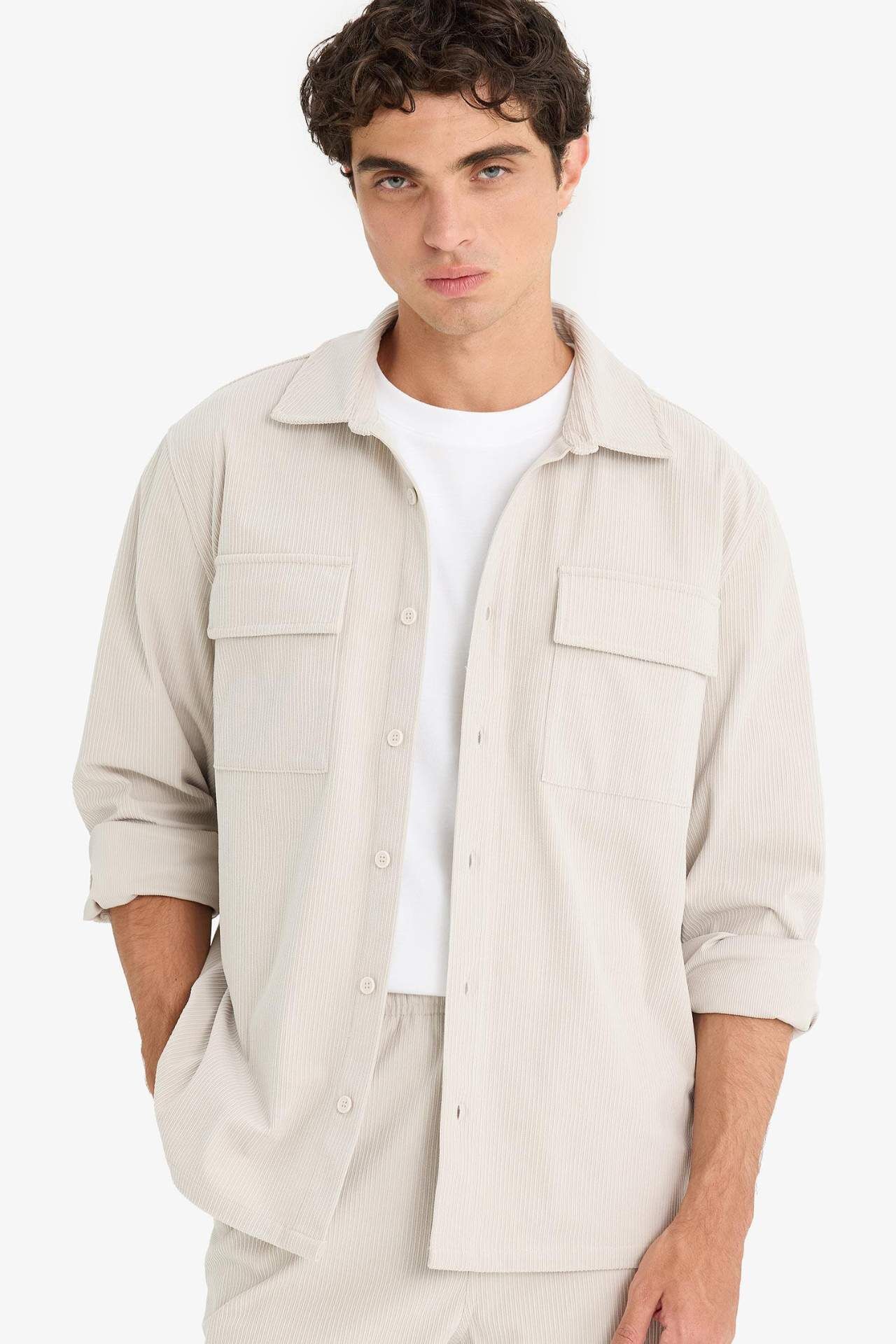 Regular Fit Fitilli Kadife Uzun Kollu Gömlek