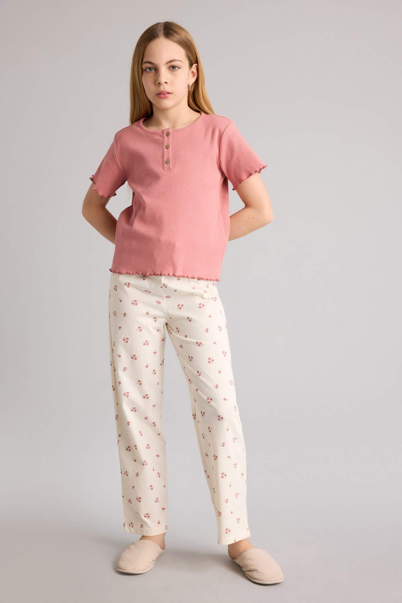 DeFacto Regular Fıt Fitilli Kaşkorse 2'li Pijama Takımı Kız Çocuk