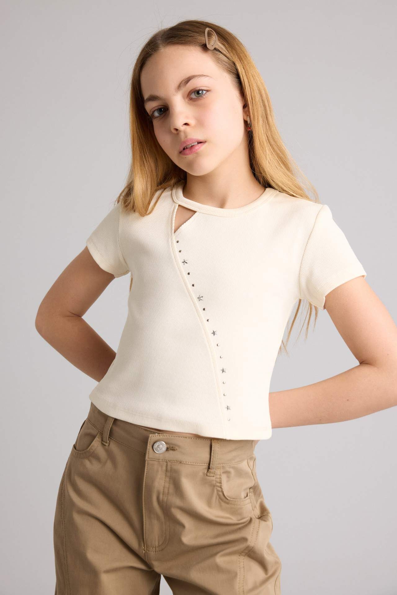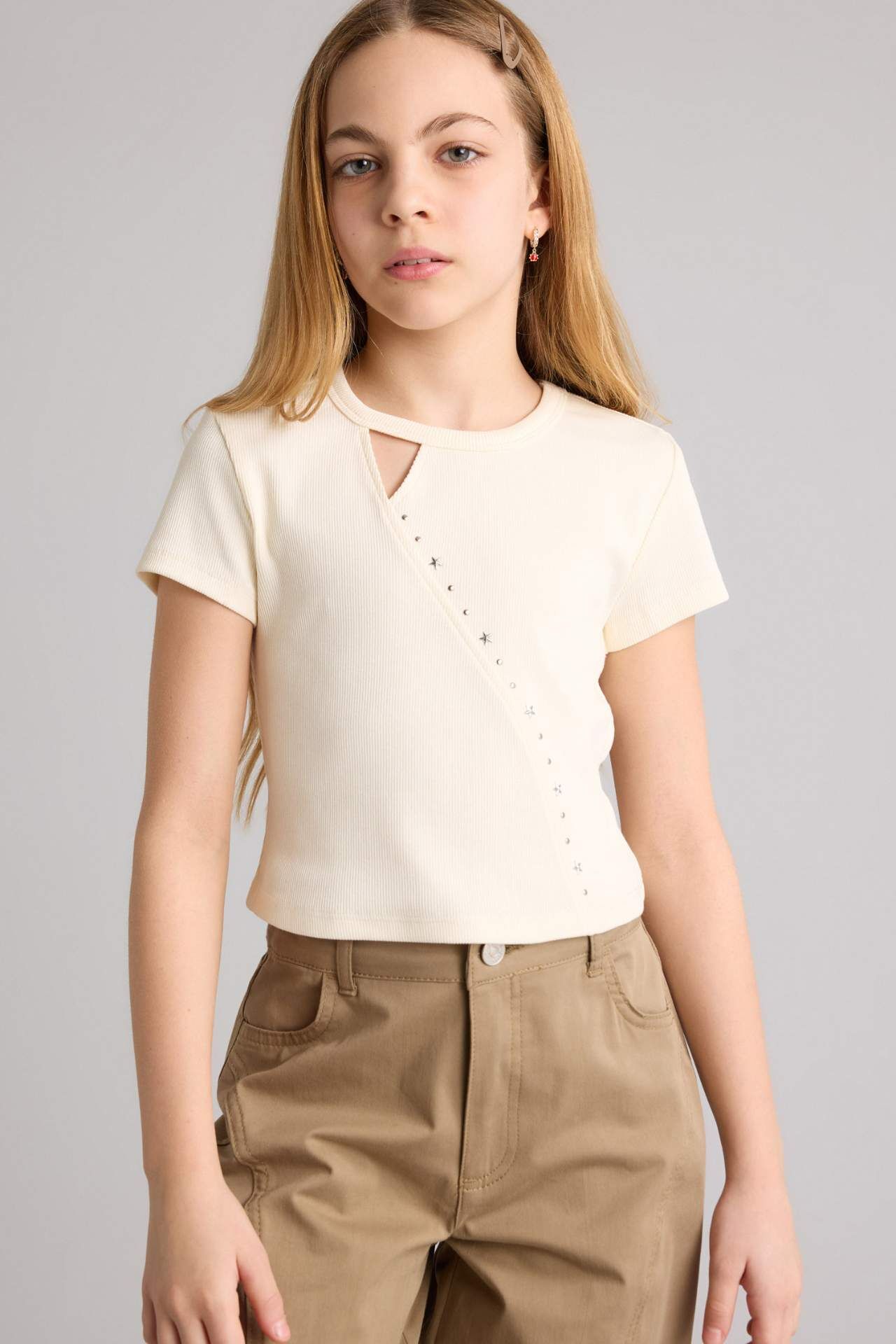 DeFacto Regular Fıt Fitilli Kaşkorse Kısa Kollu Tişört Kız Çocuk