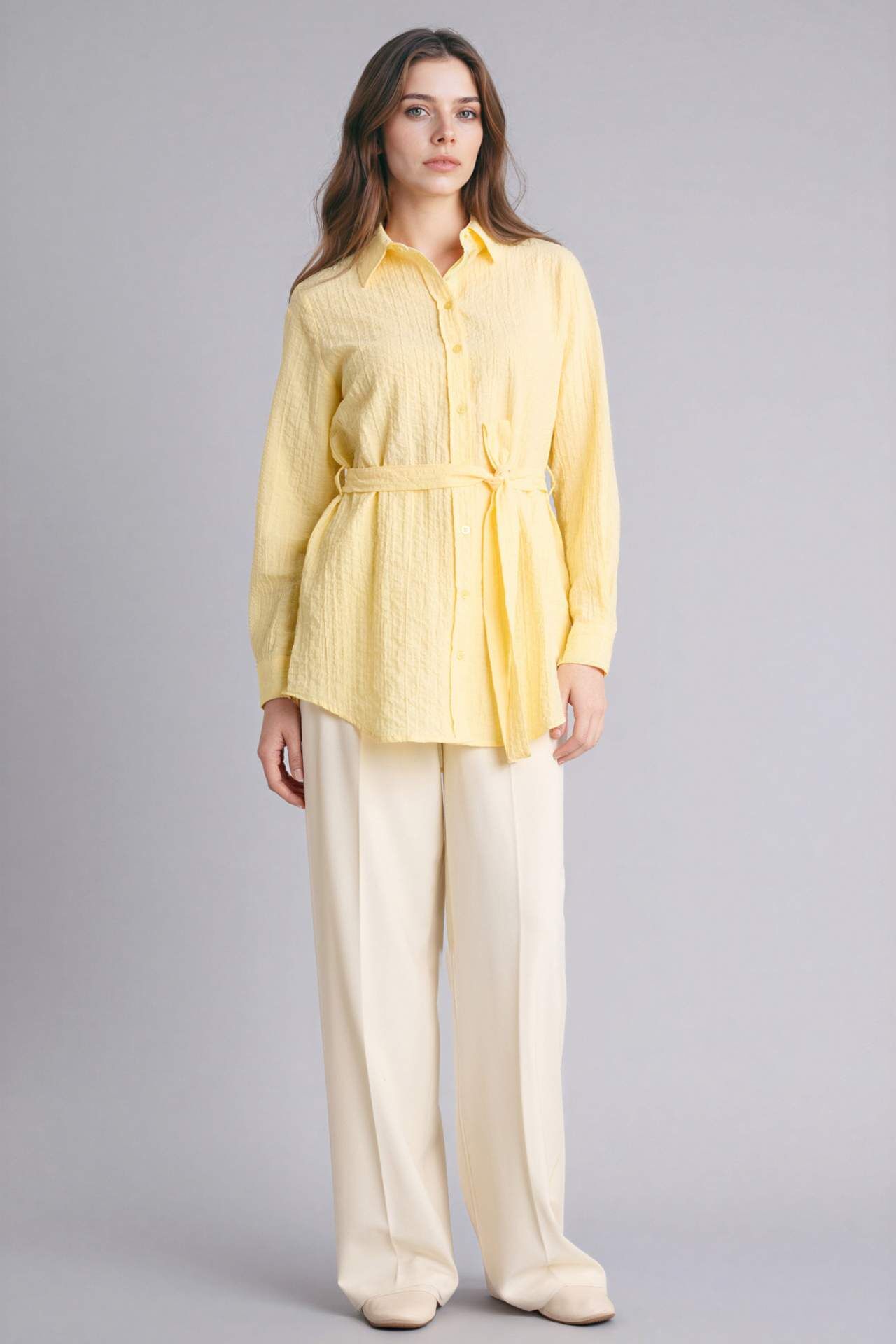 Regular Fıt Gofre Dokulu Uzun Kollu Tunik