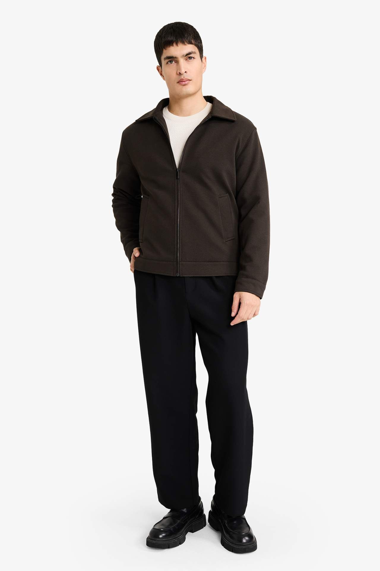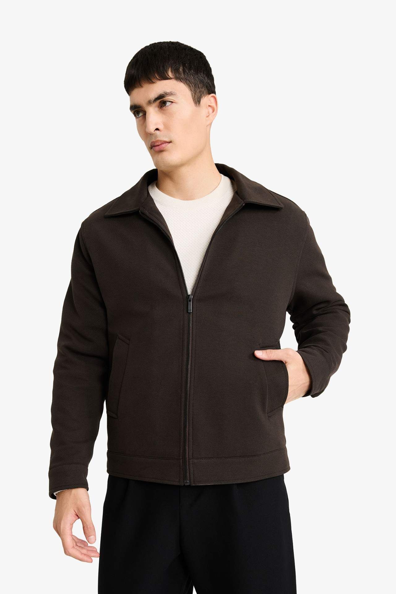 Regular Fit Gömlek Yaka Astarlı Fermuarlı Mont