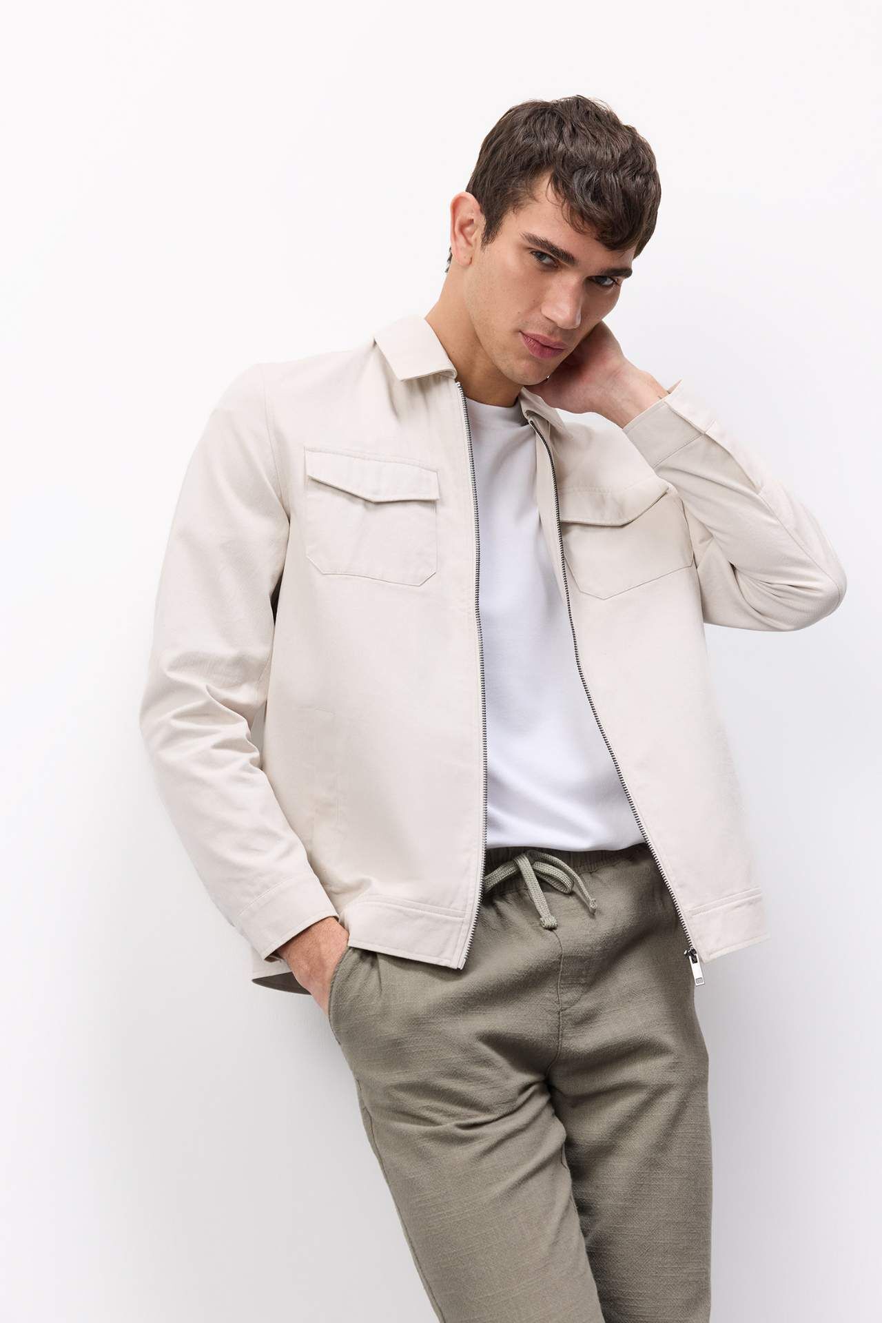 DeFacto Regular Fit Gömlek Yaka Fermuarlı Cepli Süet Mevsimlik Mont