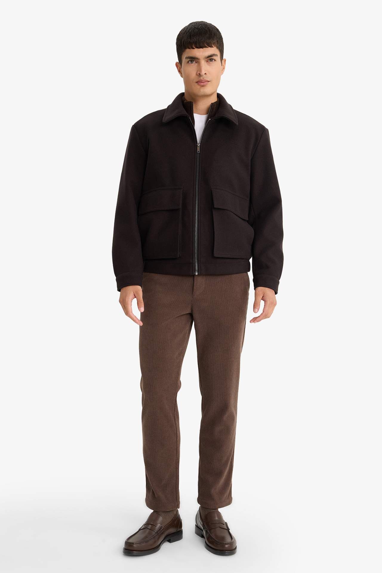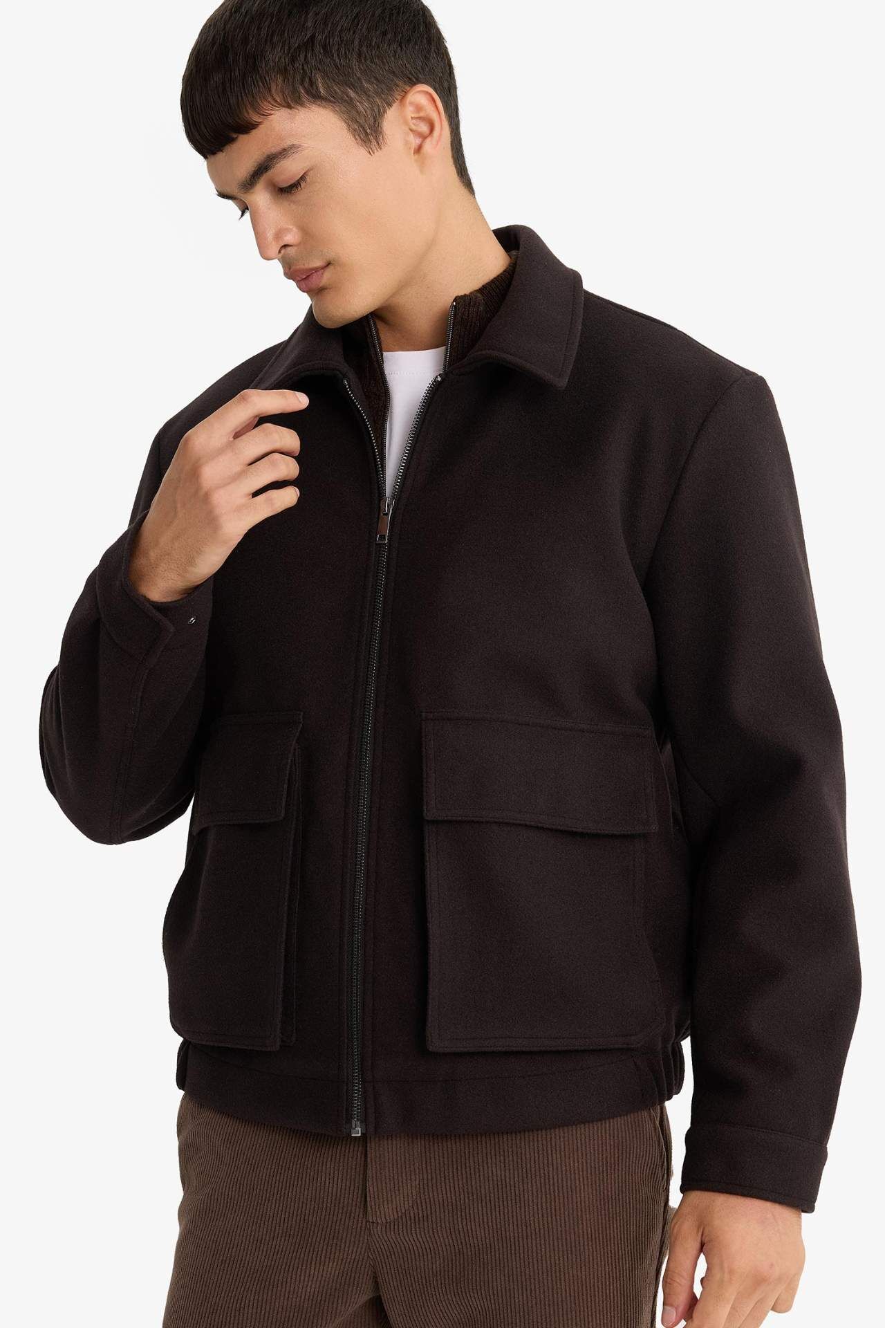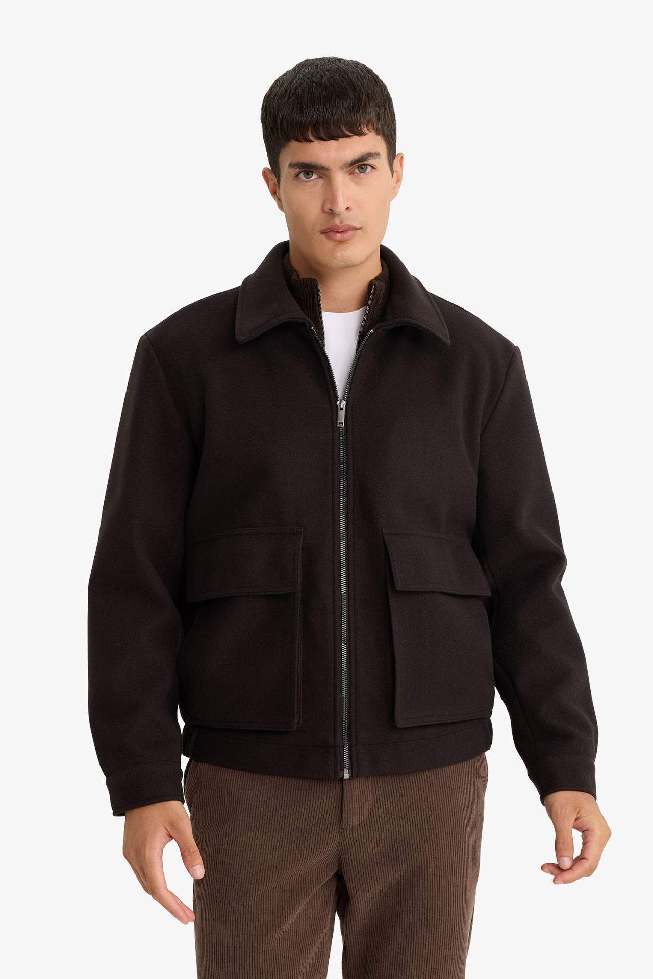 Regular Fit Gömlek Yaka Fermuarlı İç Cepli Mont