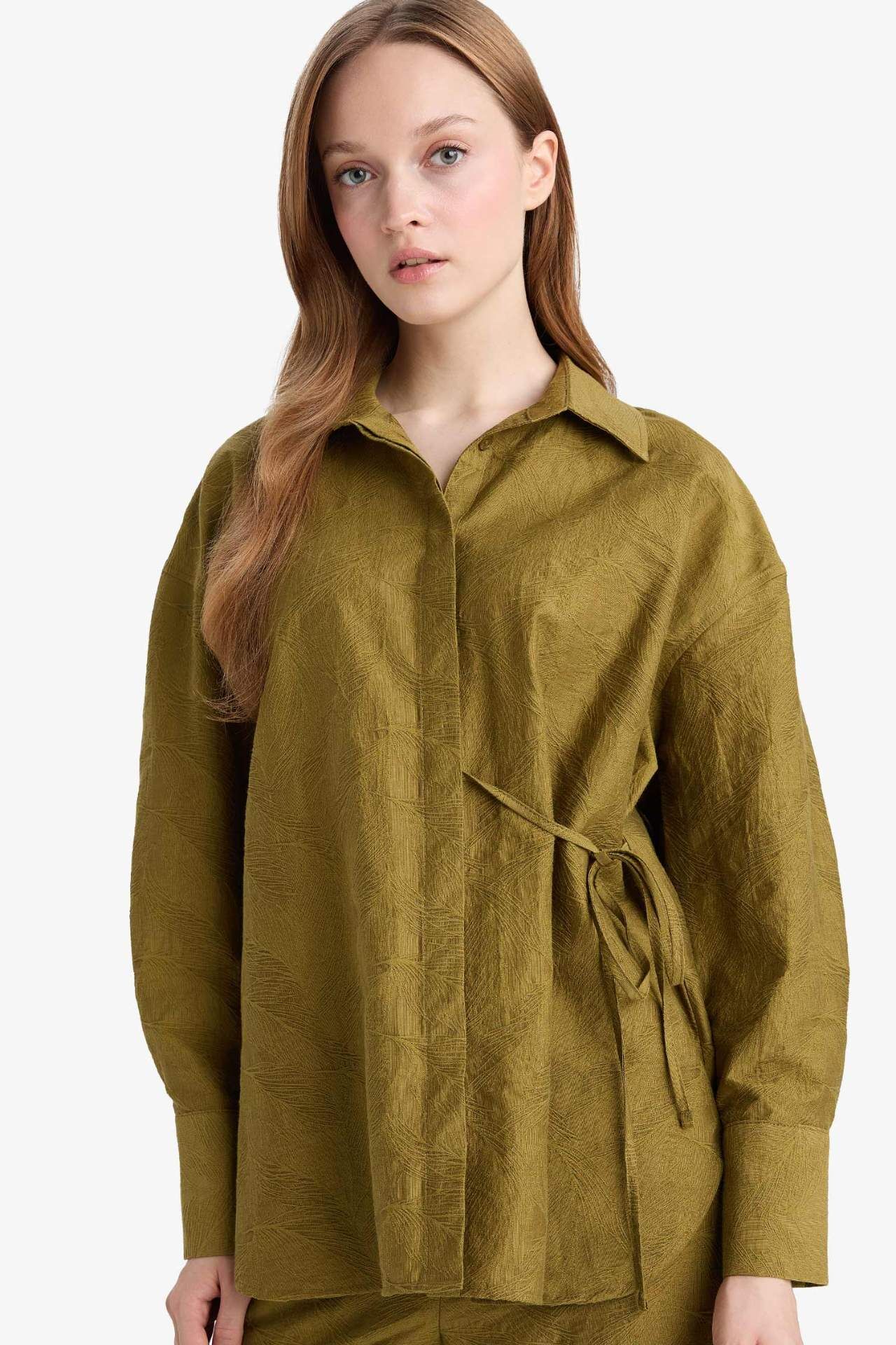 Regular Fit Gömlek Yaka Jakarlı Uzun Kollu Tunik