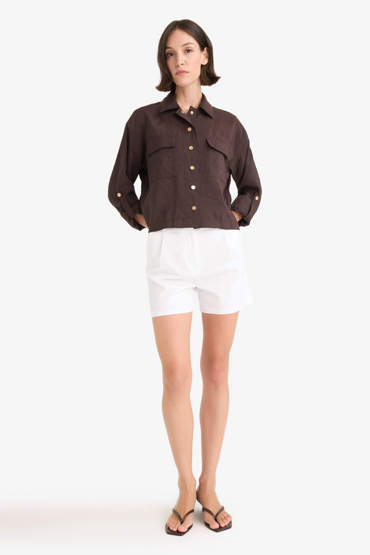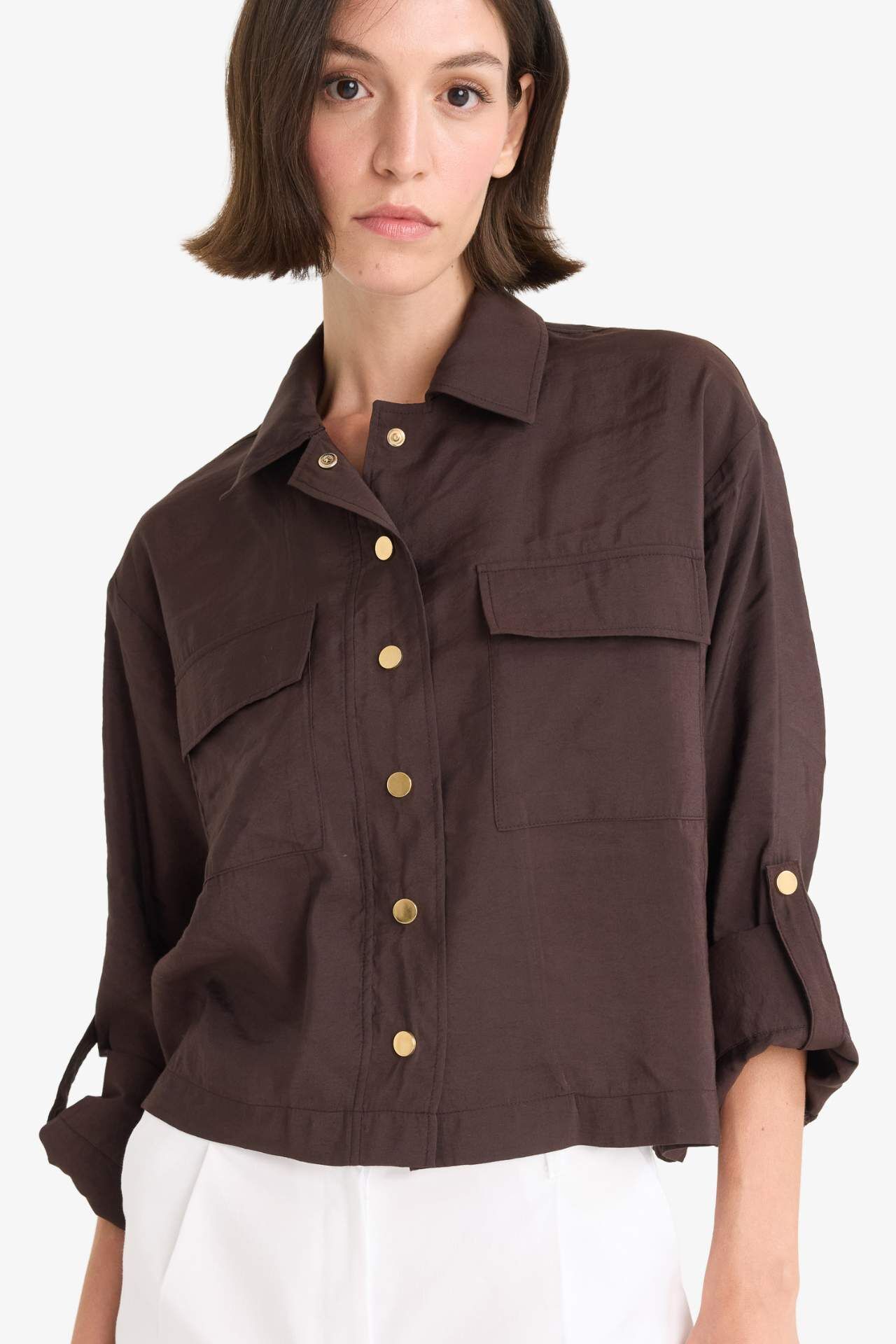 Regular Fit Gömlek Yaka Keten Karışımlı Beli Lastikli İnce Ceket