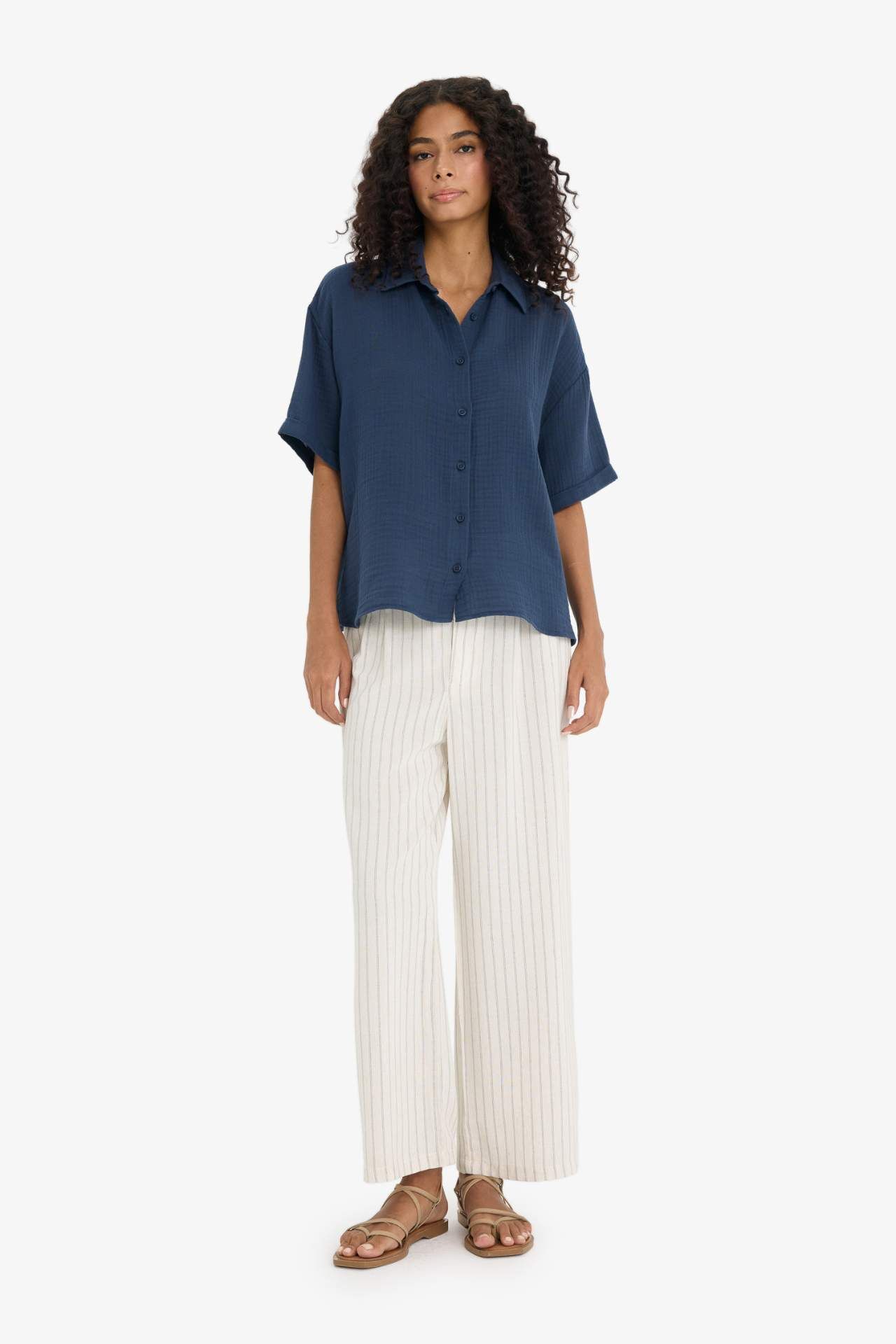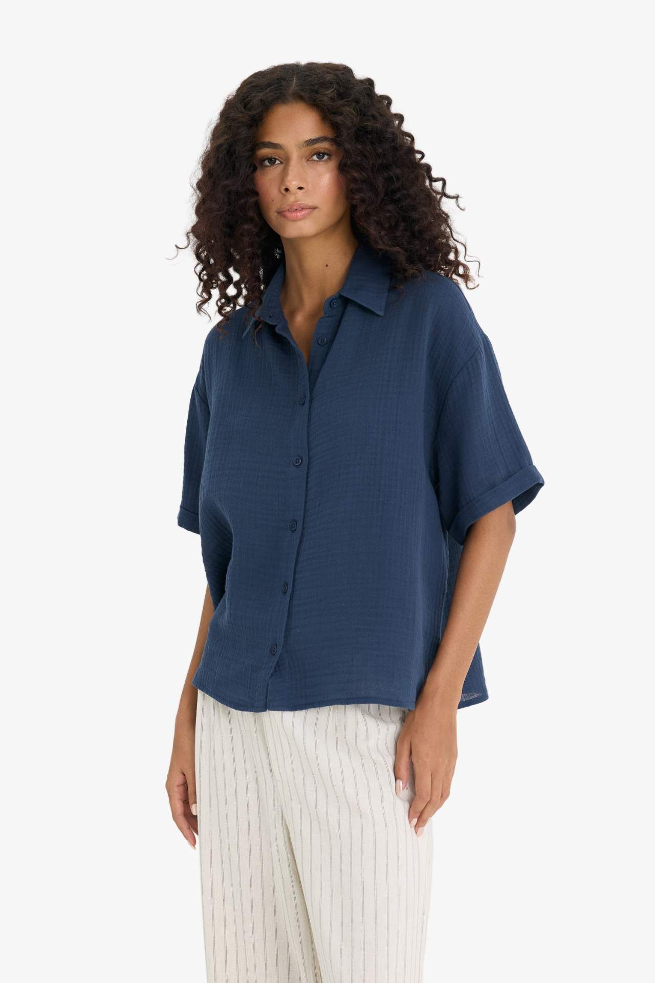 DeFacto Regular Fit Gömlek Yaka Müslin Kısa Kollu Gömlek