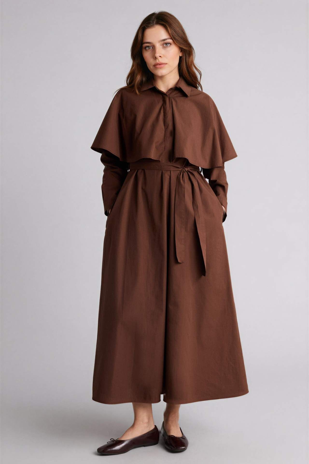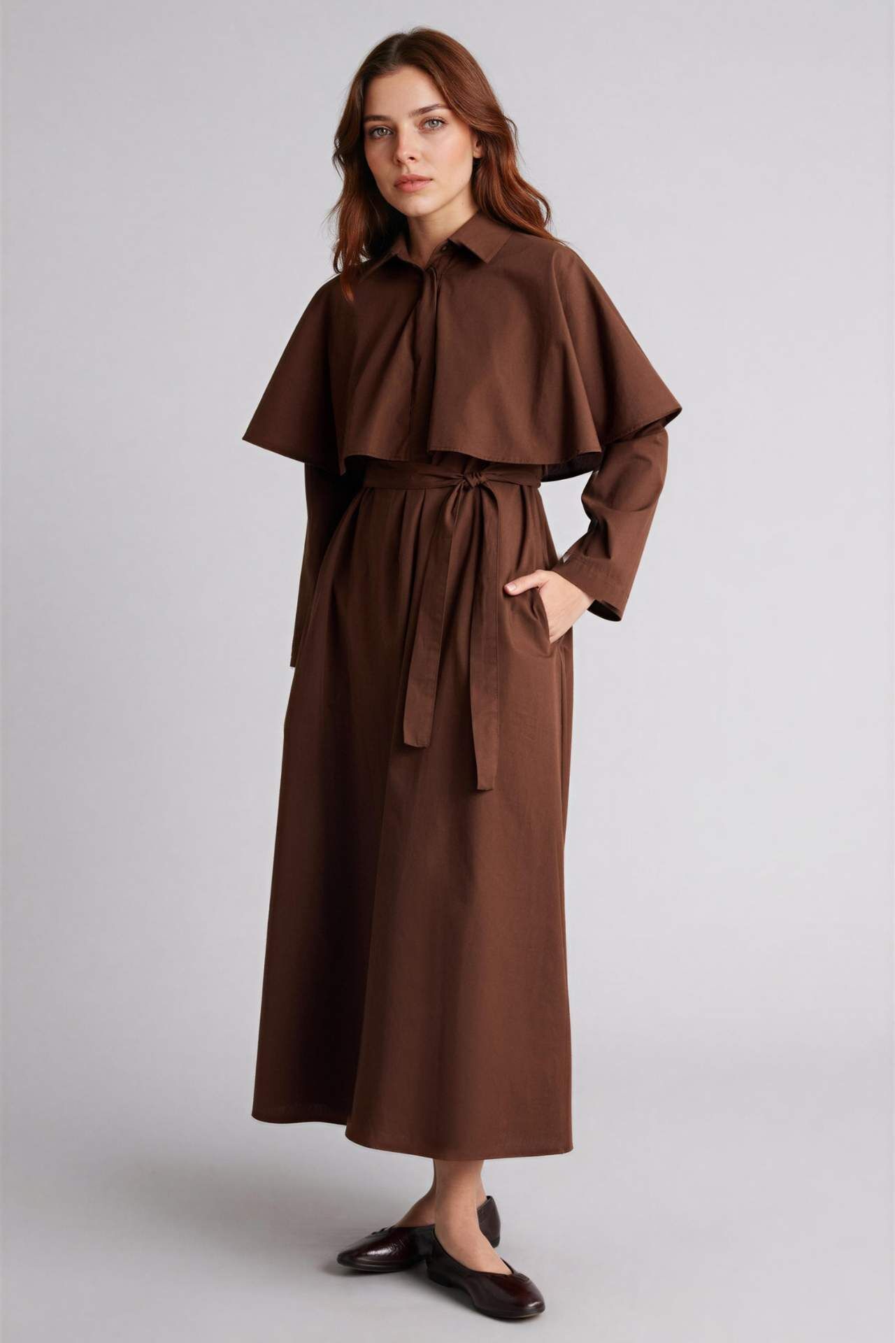 DeFacto Regular Fıt Gömlek Yaka Poplin Uzun Kollu Elbise