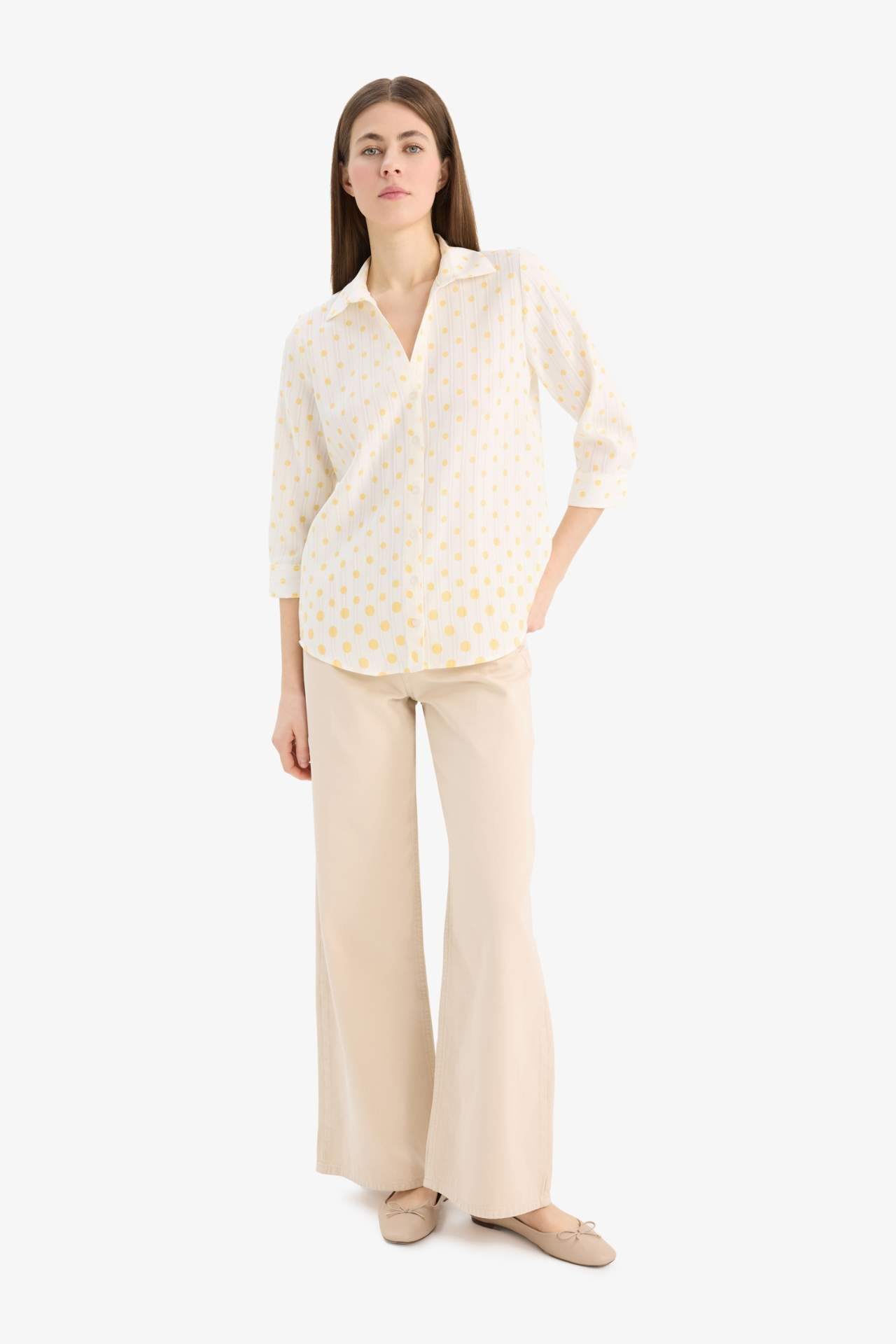 Regular Fit Gömlek Yaka Puantiye Jakarlı Uzun Kollu Gömlek