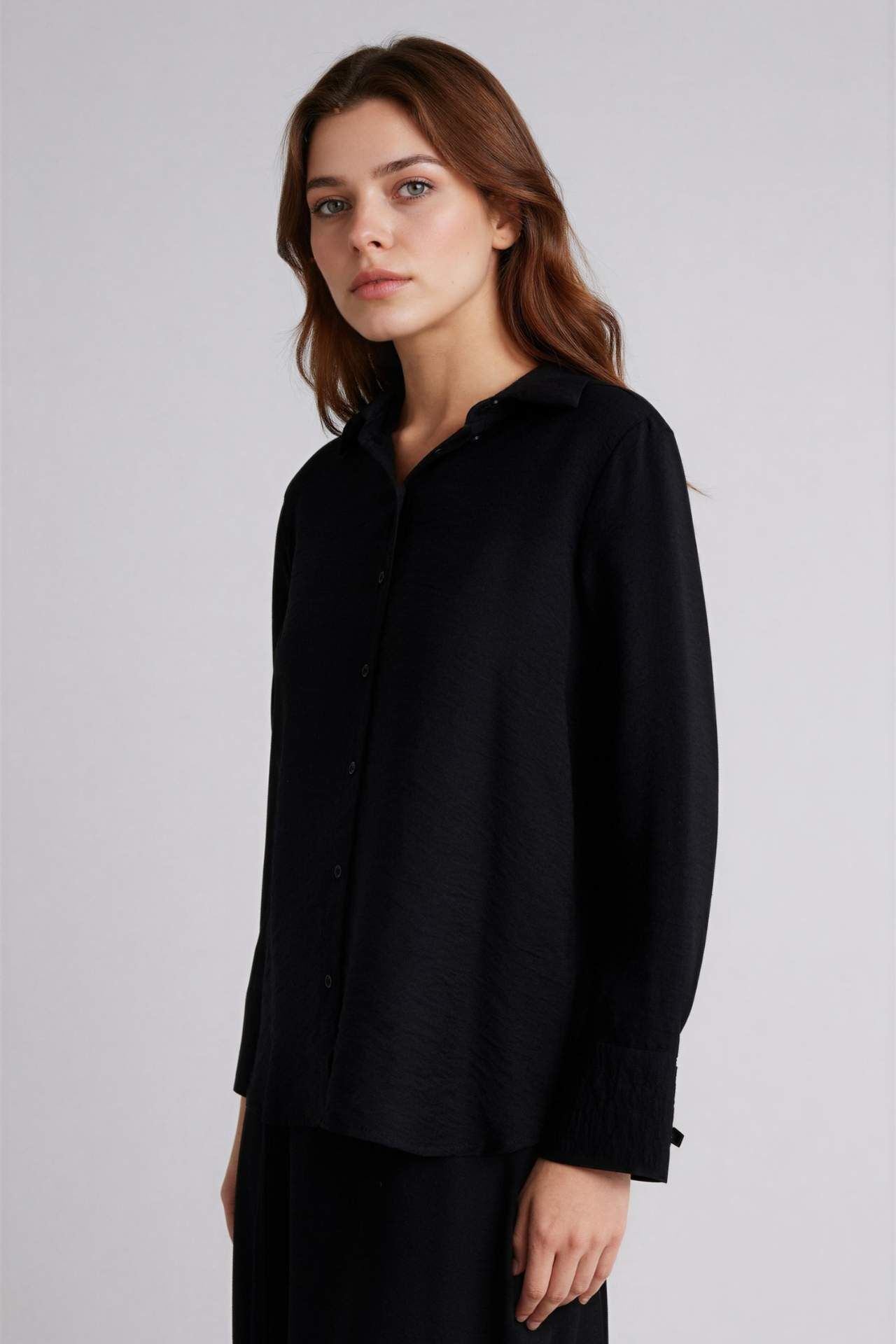 DeFacto Regular Fıt Gömlek Yaka Uzun Kollu Gömlek