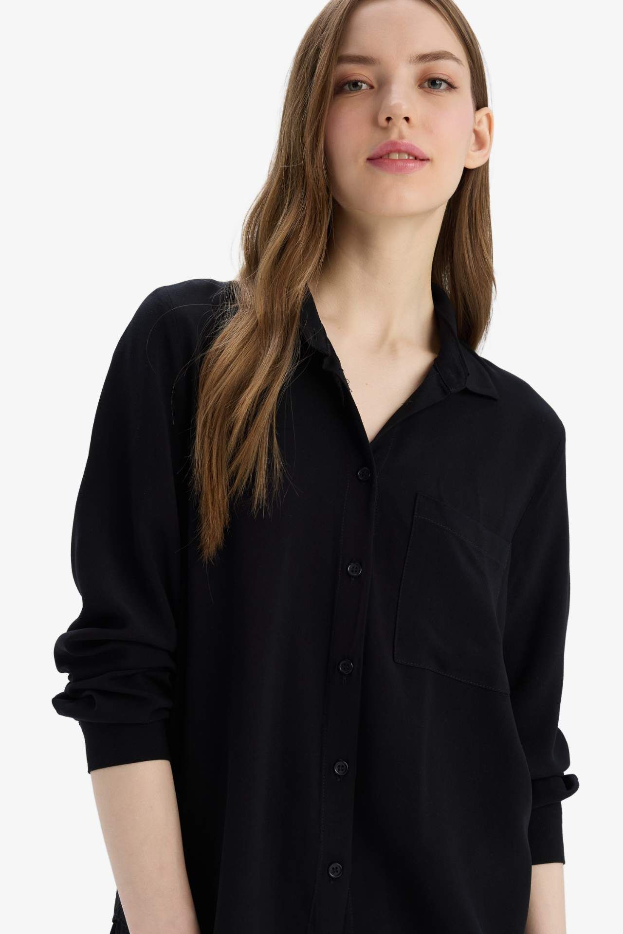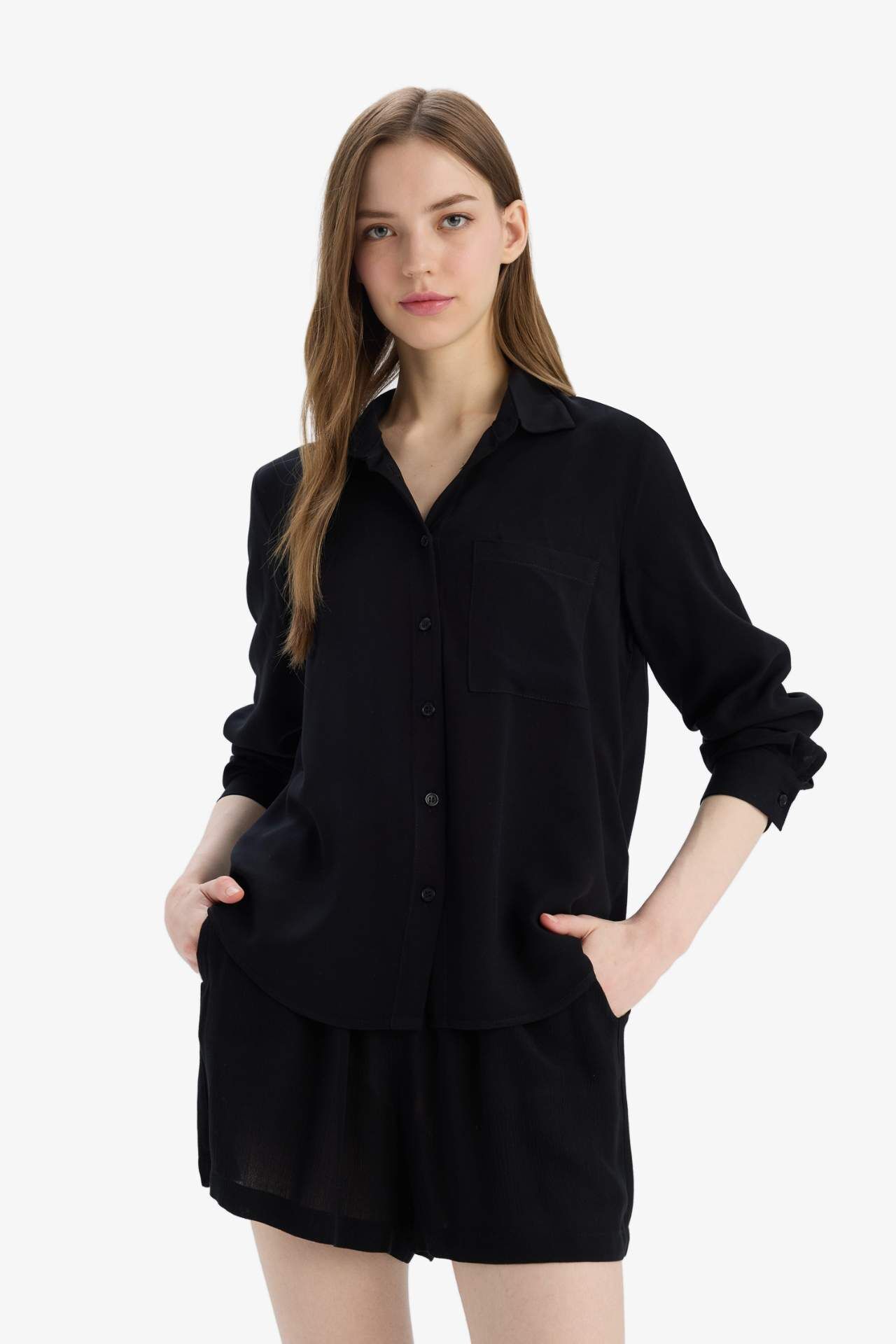 DeFacto Regular Fit Gömlek Yaka Viskon Uzun Kollu Gömlek N2518AZ25SPBK81