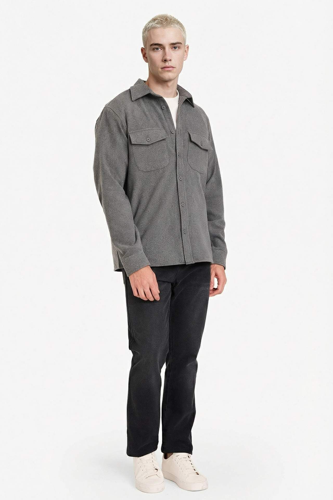 Regular Fit Gömlek Yaka Yün Görünümlü Uzun Kollu Gömlek