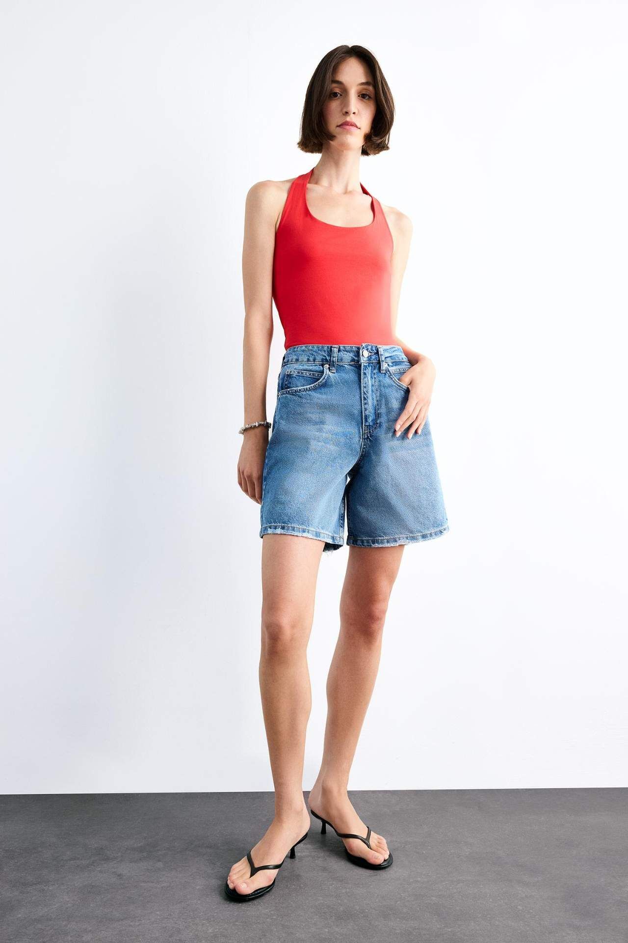 Regular fit jean şort, sade tasarımı ve rahat kalıbıyla yaz aylarının vazgeçilmez parçasıdır. Günlük kombinlerde konfor ve şıklığı bir arada sunar. Pamuk 100%,Pamuk 100%,Pamuk 100%,Pamuk 100%,Pamuk 100%,Pamuk 100%,Pamuk 100% Manken Bedeni: Göğüs: 83 Boy: 1,81 Basen: 90 Bel: 58