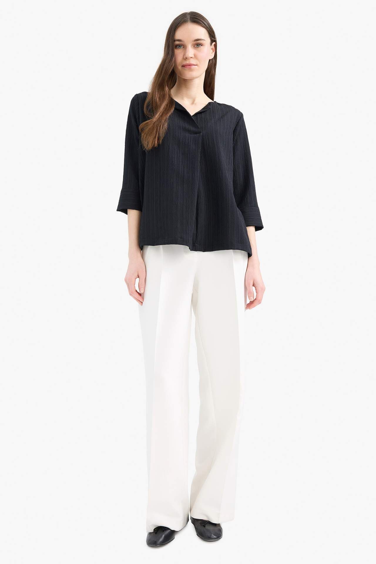 DeFacto Regular Fit Kaçık Yaka Basic Düz Yarım Kollu Bluz