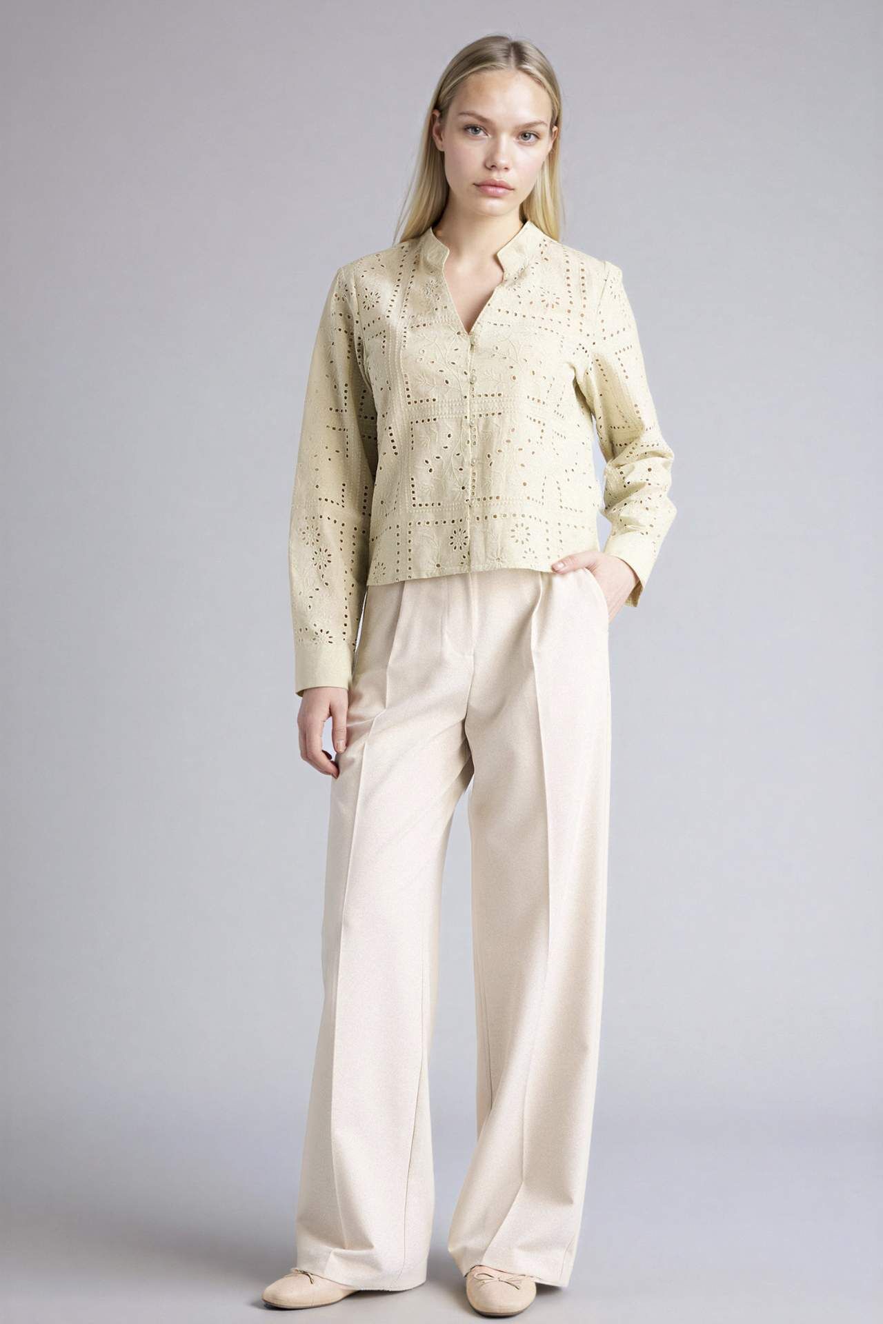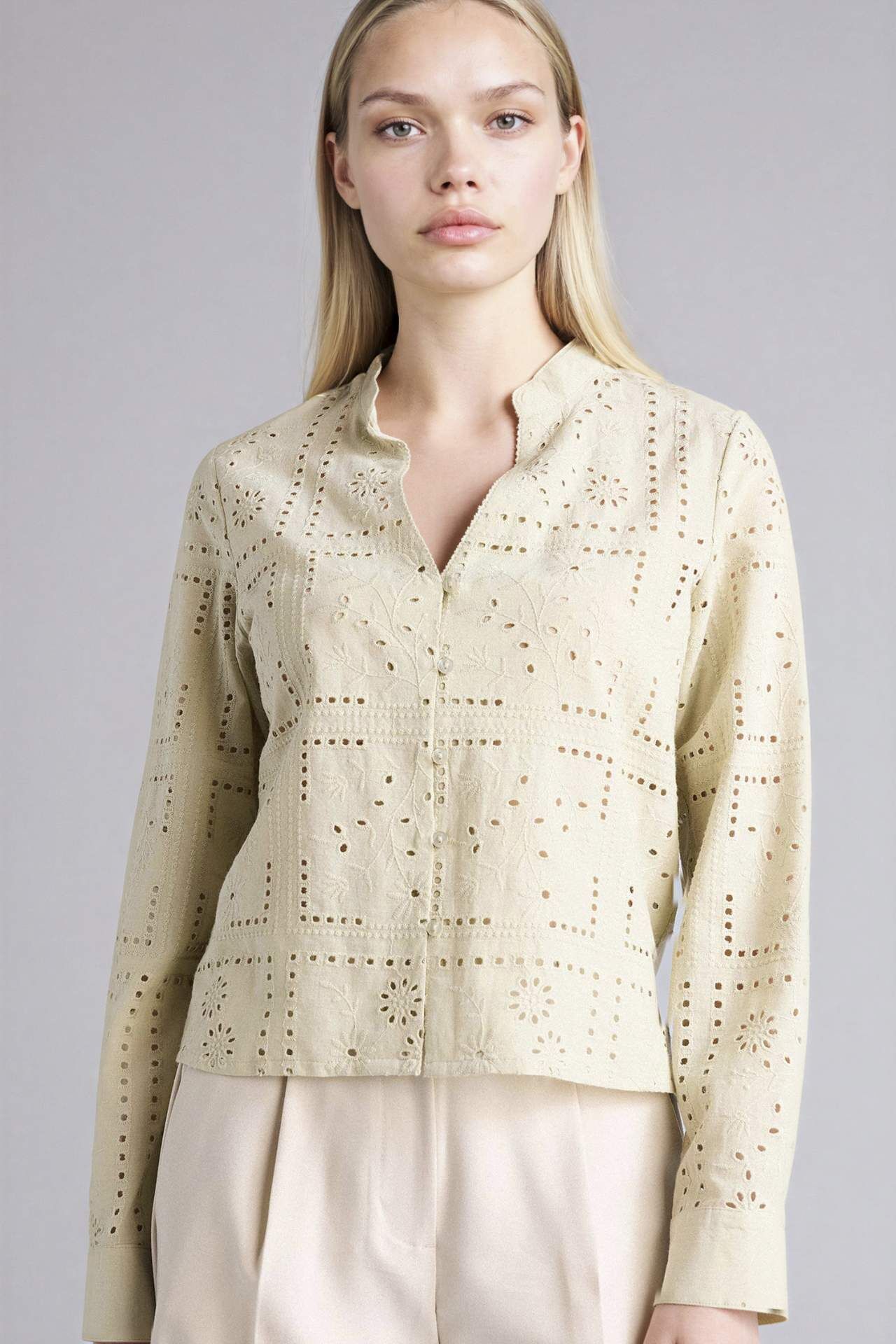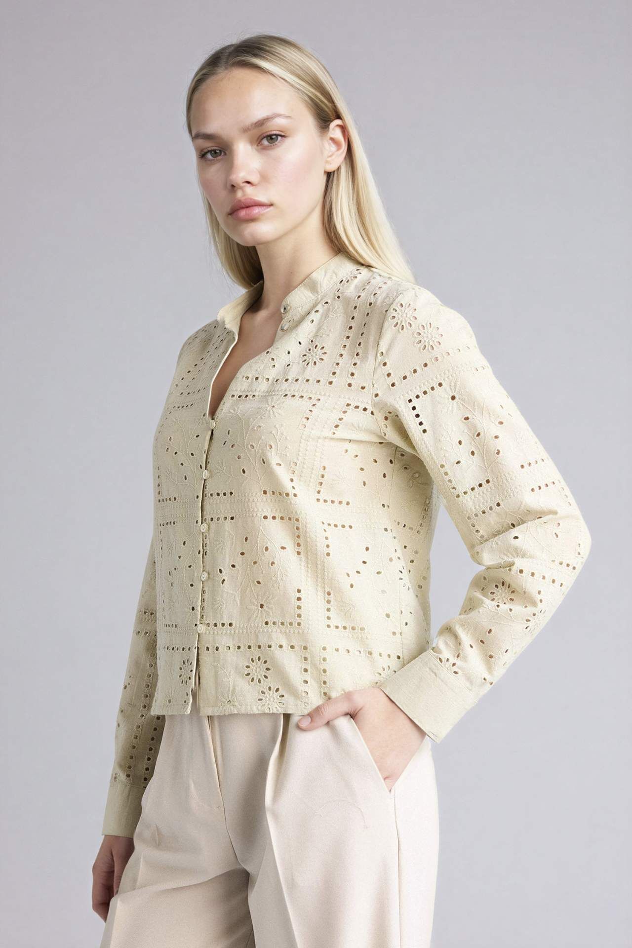 DeFacto Regular Fıt Kaçık Yaka Brode Uzun Kollu Gömlek