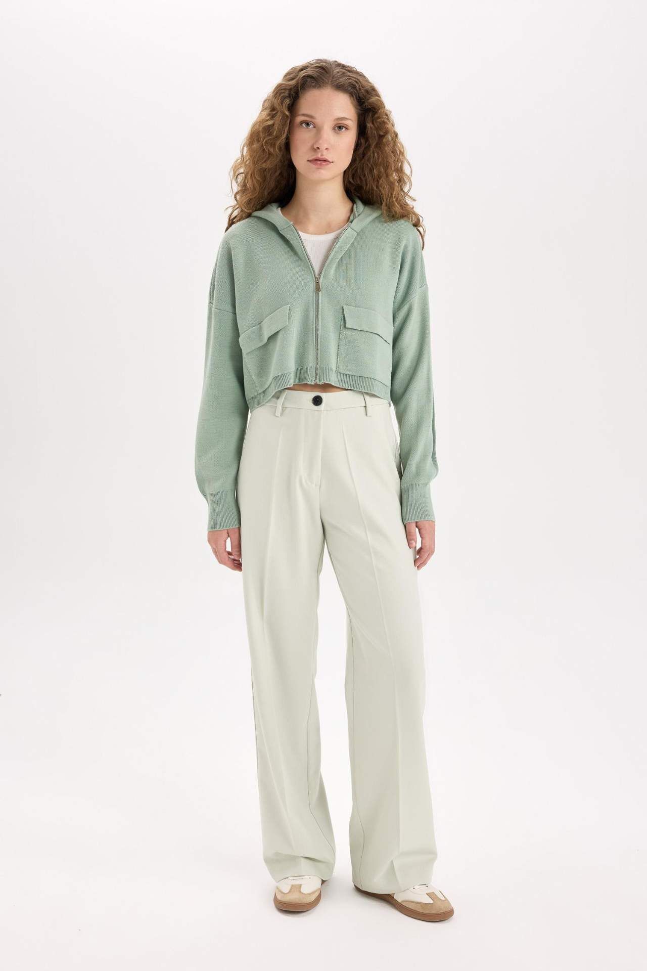 DeFacto Regular Fit Kapüşonlu Basic Düz Fermuarlı Triko Hırka E2270AXNSGN955