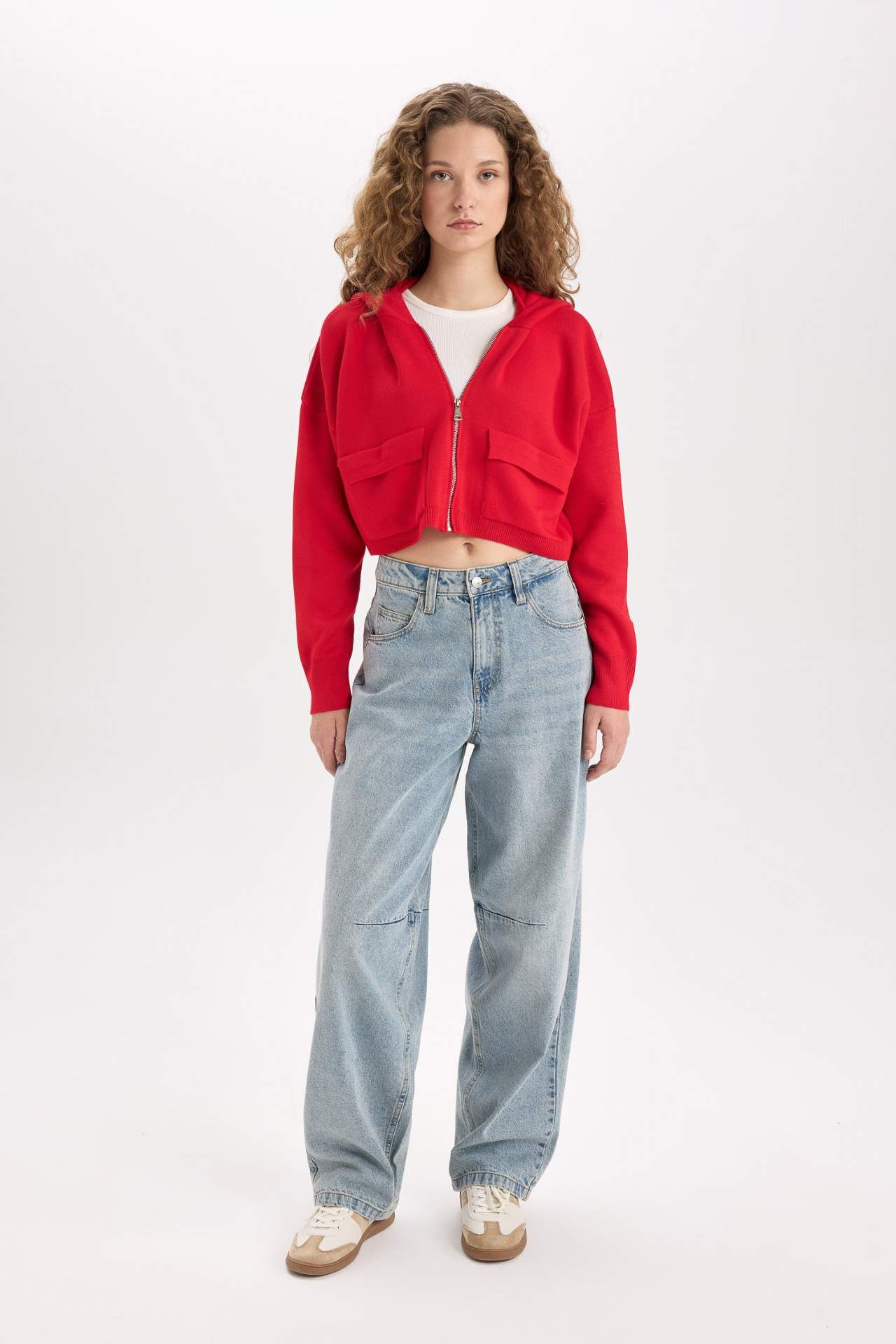 DeFacto Regular Fit Kapüşonlu Basic Düz Fermuarlı Triko Hırka E2270AXNSRD335