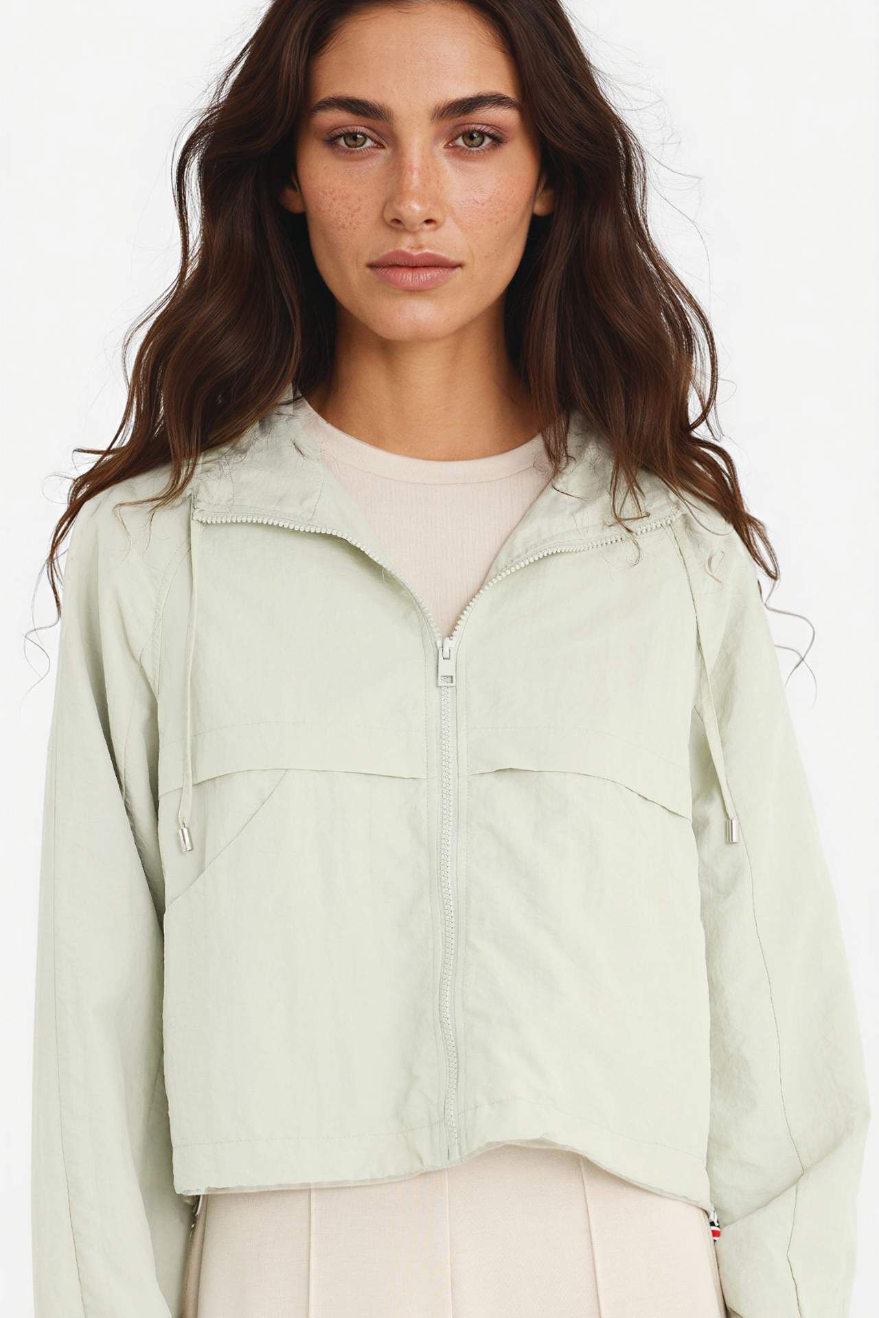 Regular Fit Kapüşonlu Fermuarlı Crop Yağmurluk E8546AX25AUGN1199