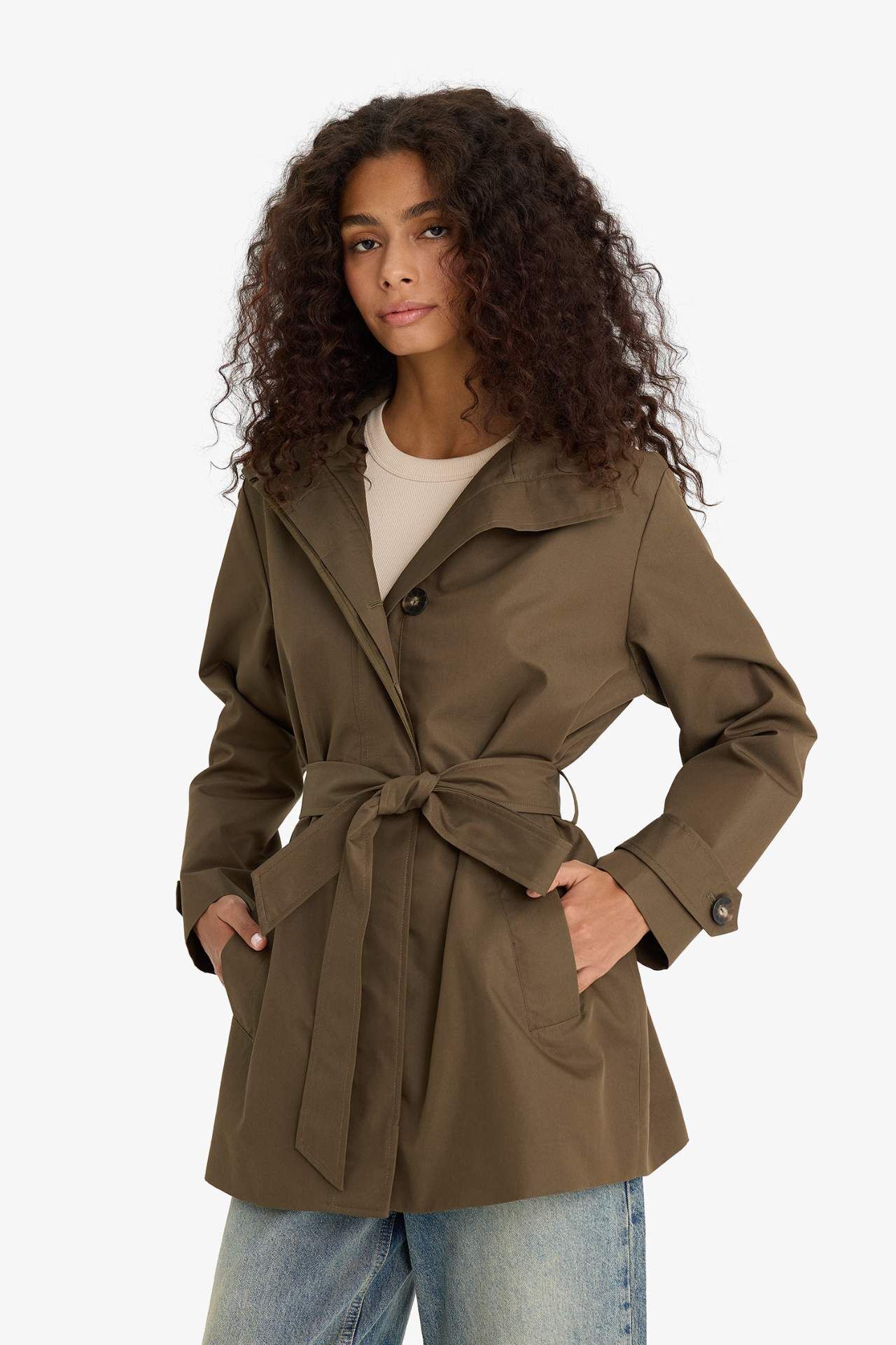 DeFacto Regular Fit Kapüşonlu Kemerli Trençkot