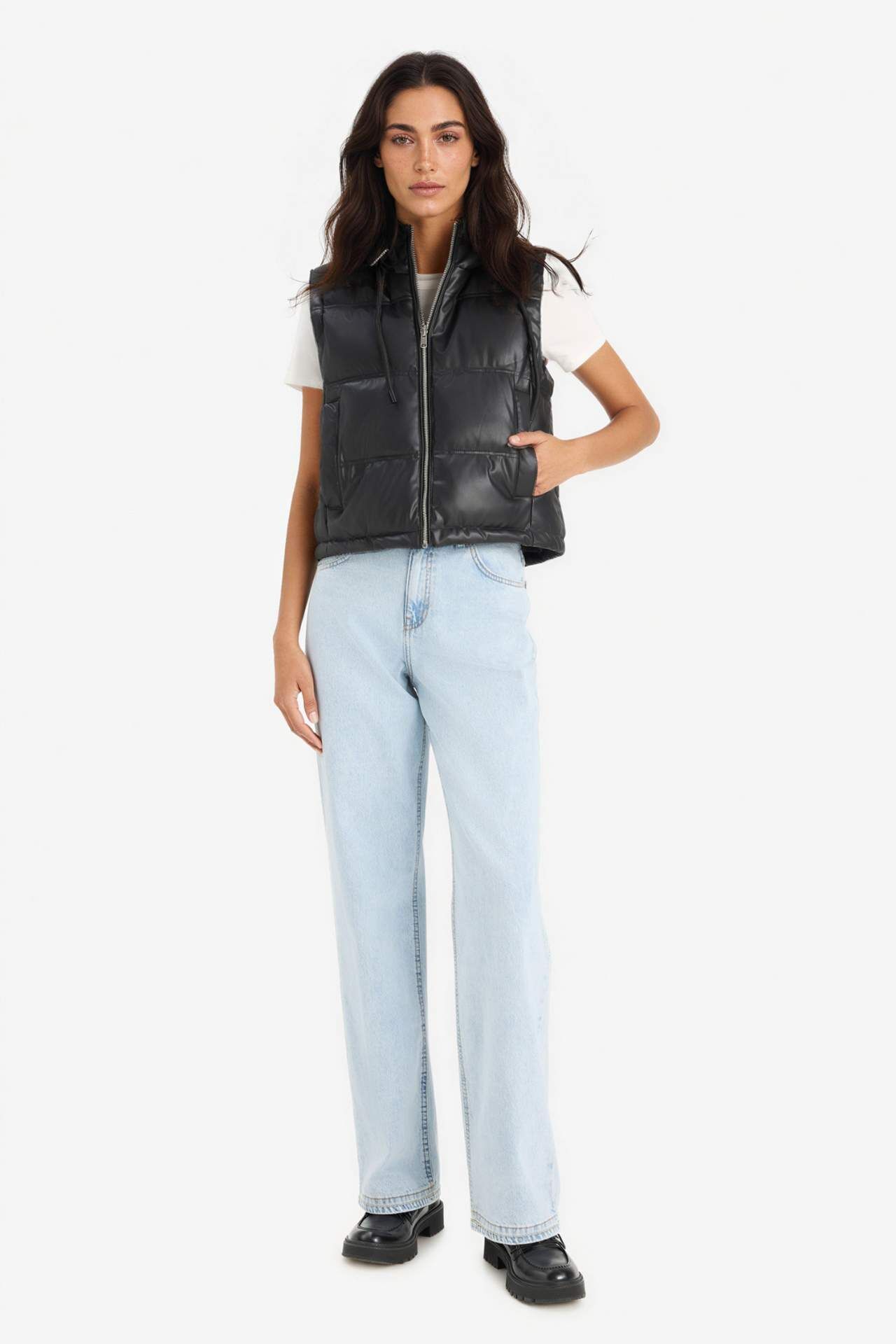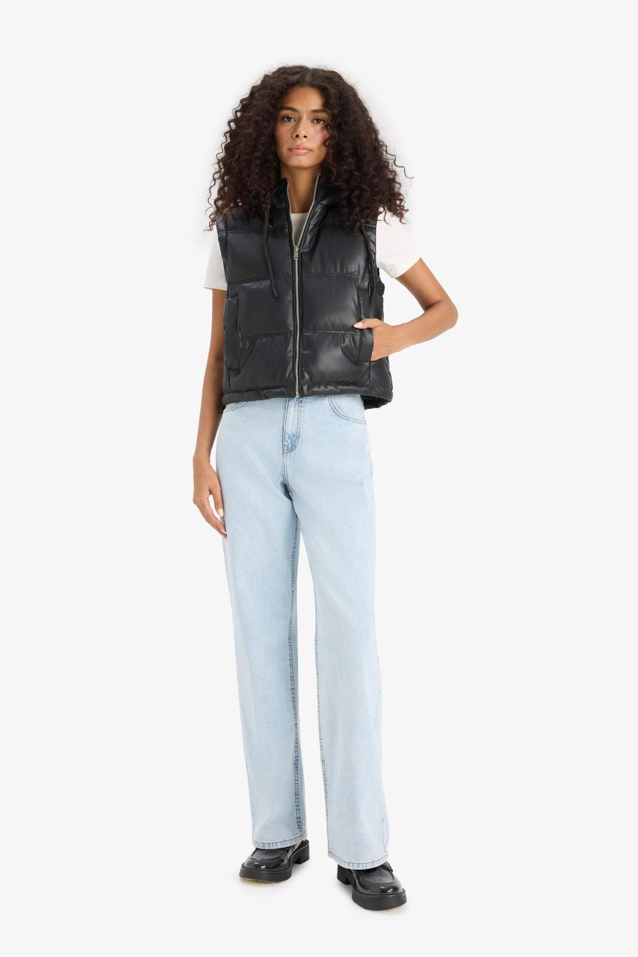 Regular Fit Kapüşonlu Suni Deri Yelek