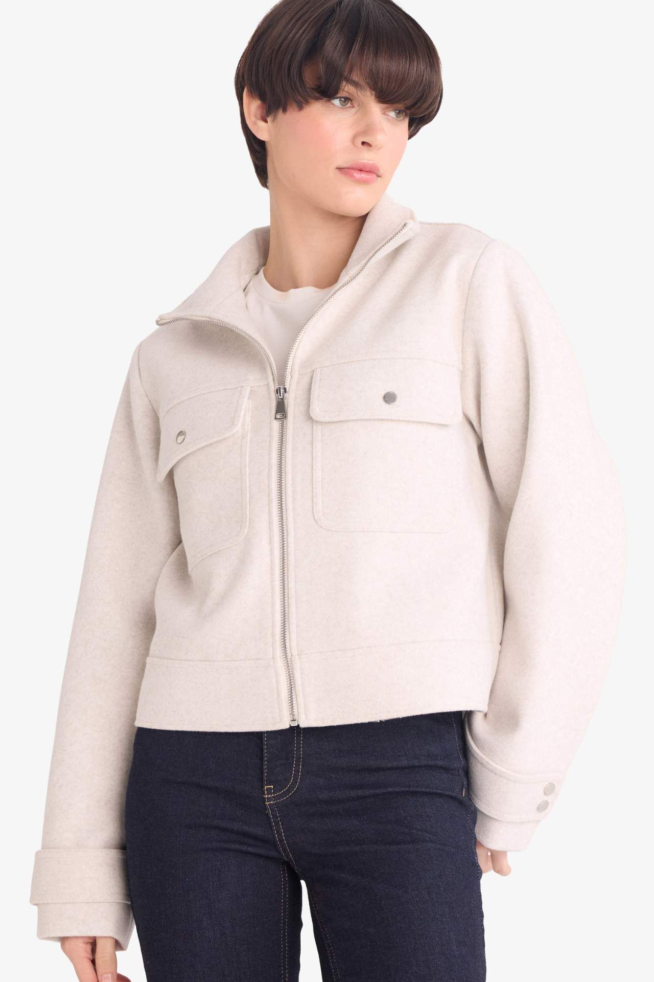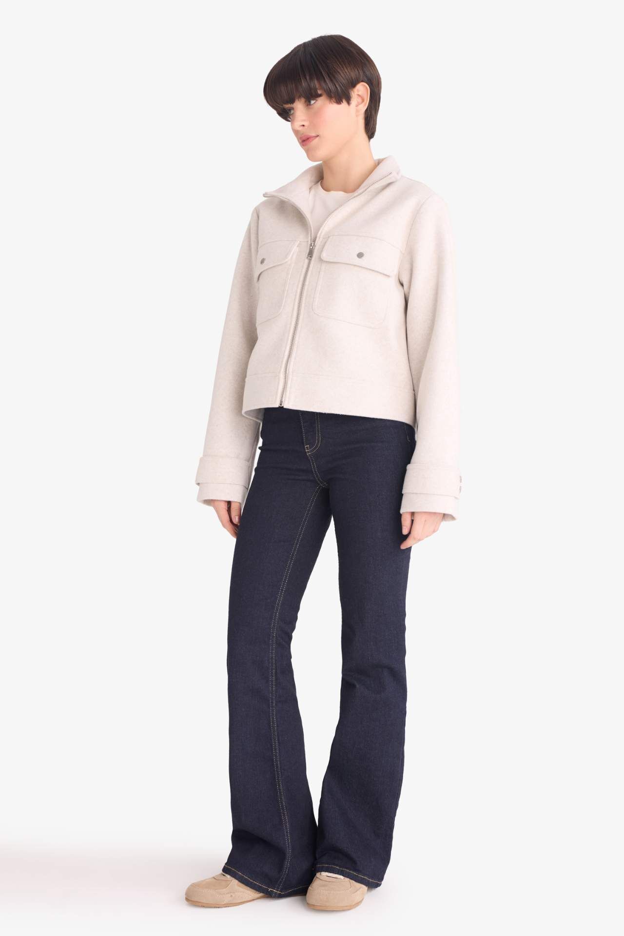 Kısa kaşe mont, şık ve modern tasarımıyla kombinlerinizi tamamlar. Sıcak tutan yapısı ve rahat kesimiyle soğuk havalarda konfor sağlar. Poliester 100%,Poliester 100% Manken Bedeni: Göğüs: 85 Boy: 1,7 Basen: 88 Bel: 60