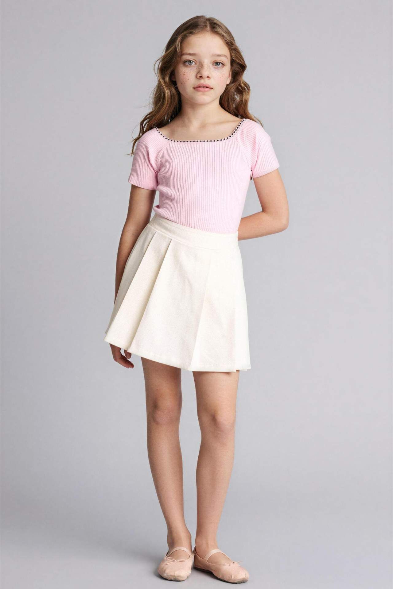 DeFacto Regular Fıt Kayık Yaka Ribana Kısa Kollu Tişört Kız Çocuk