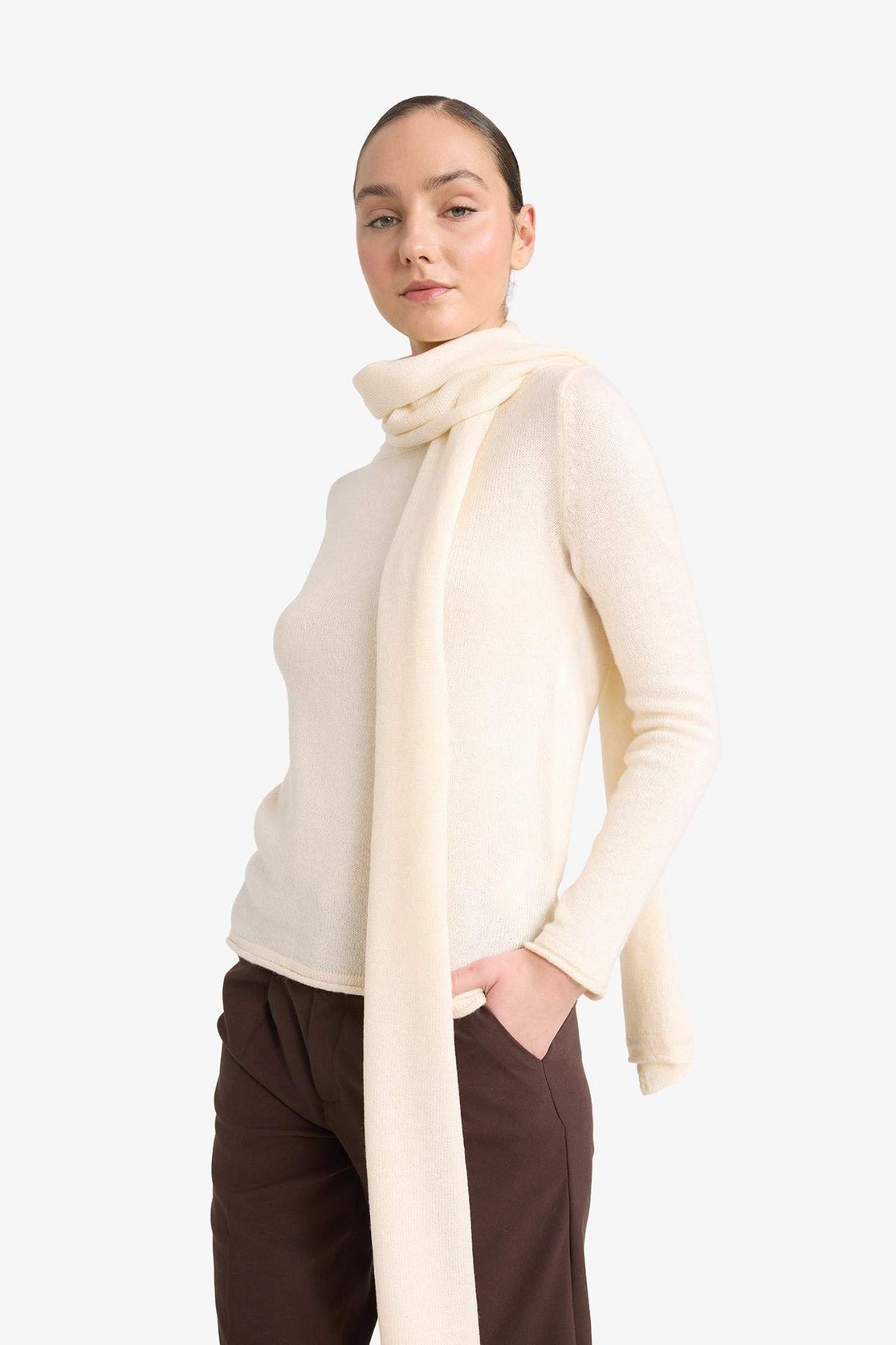 Regular Fit Kayık Yaka Yumuşak Dokulu Şal Detaylı Triko Kazak, zarif kayık yaka tasarımı ve şal detayıyla şıklığı ön plana çıkarır. Yumuşak triko dokusuyla soğuk havalarda sıcak ve konforlu bir kullanım sunar. Akrilik 74%,Poliester 26%,Akrilik 74%,Poliester 26%,Akrilik 74%,Poliester 26%,Akrilik 74%,Poliester 26%,Akrilik 74%,Poliester 26%,Akrilik 74%,Poliester 26%,Akrilik 74%,Poliester 26% Manken Bedeni: Göğüs: 86 Boy: 1,78 Basen: 89 Bel: 60