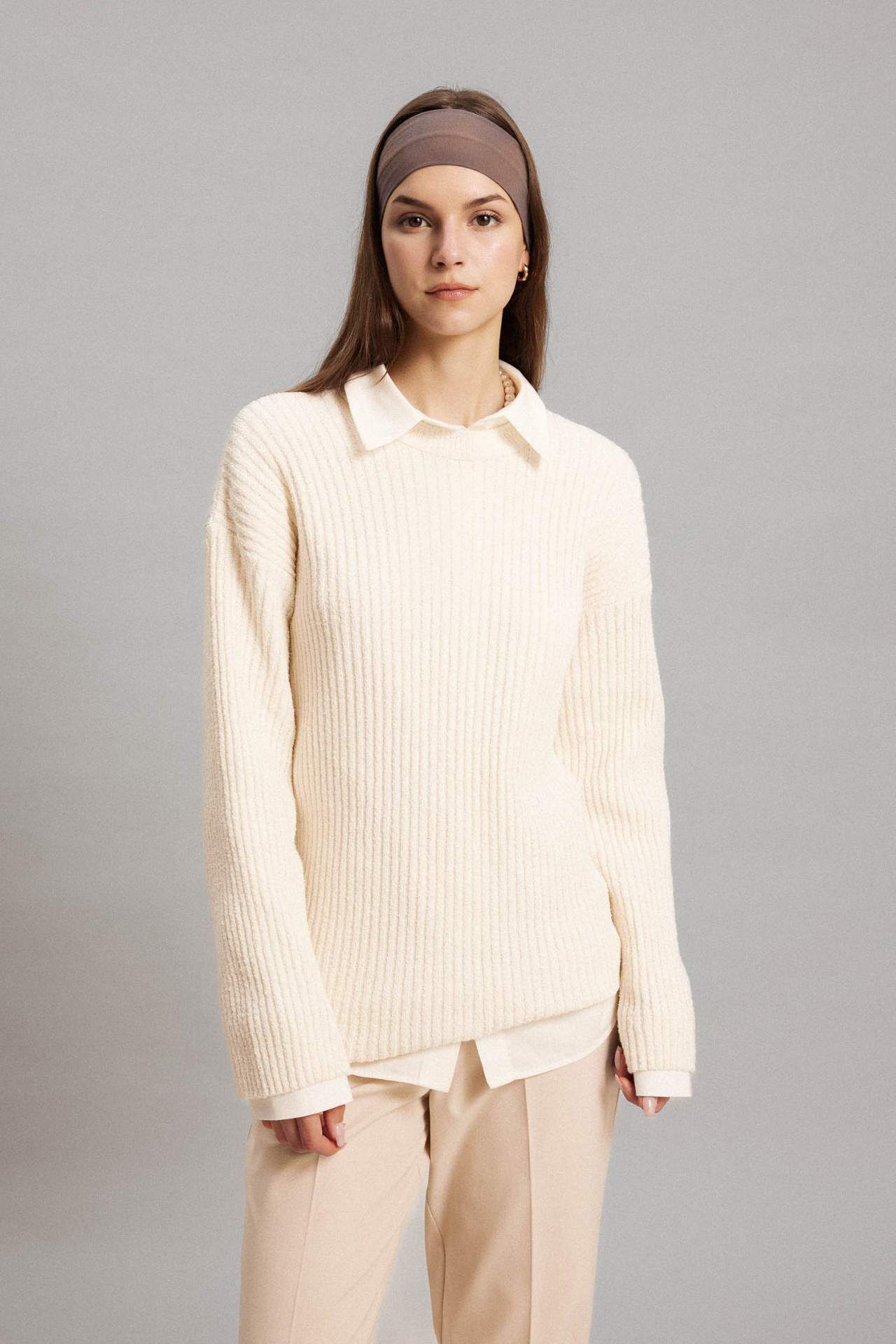 Yüksek kaliteli kumaşlardan üretilen Regular Fit Kazak Tunik, şıklığı ve rahatlığı bir araya getiriyor. Klasik kesimi ve zarif detaylarıyla her mevsimde tercih edebileceğiniz bir parça. Şık bir görünüm elde etmek isteyenler için ideal bir seçenek. Her stil ile uyum sağlayan bu tuniği gardırobunuzun vazgeçilmezi yapabilirsiniz. Pamuk 41%,Viskoz 5%,Poliester 54%,Pamuk 41%,Viskoz 5%,Poliester 54%