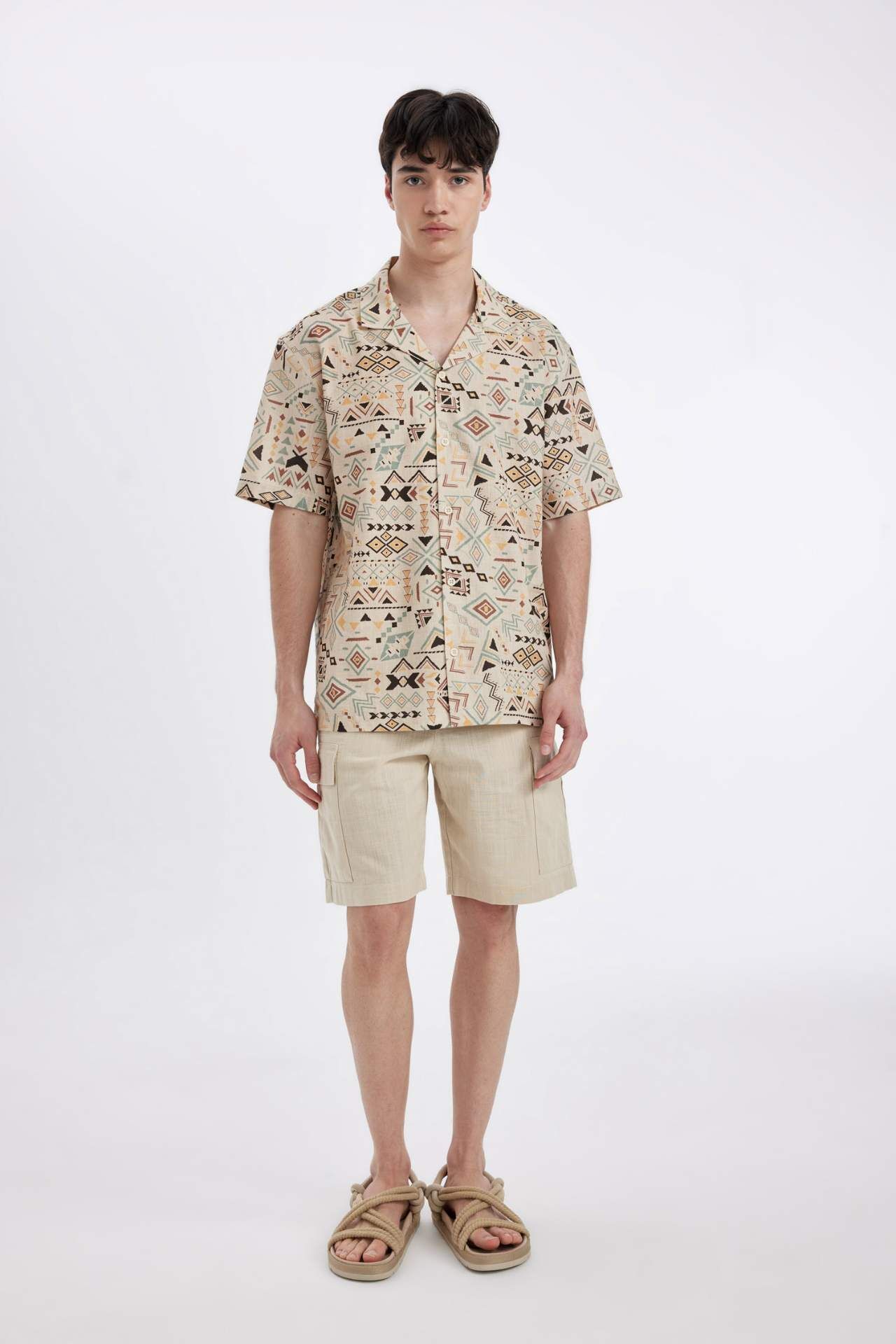DeFactoFit Regular Fit Keten Görünümlü Bermuda