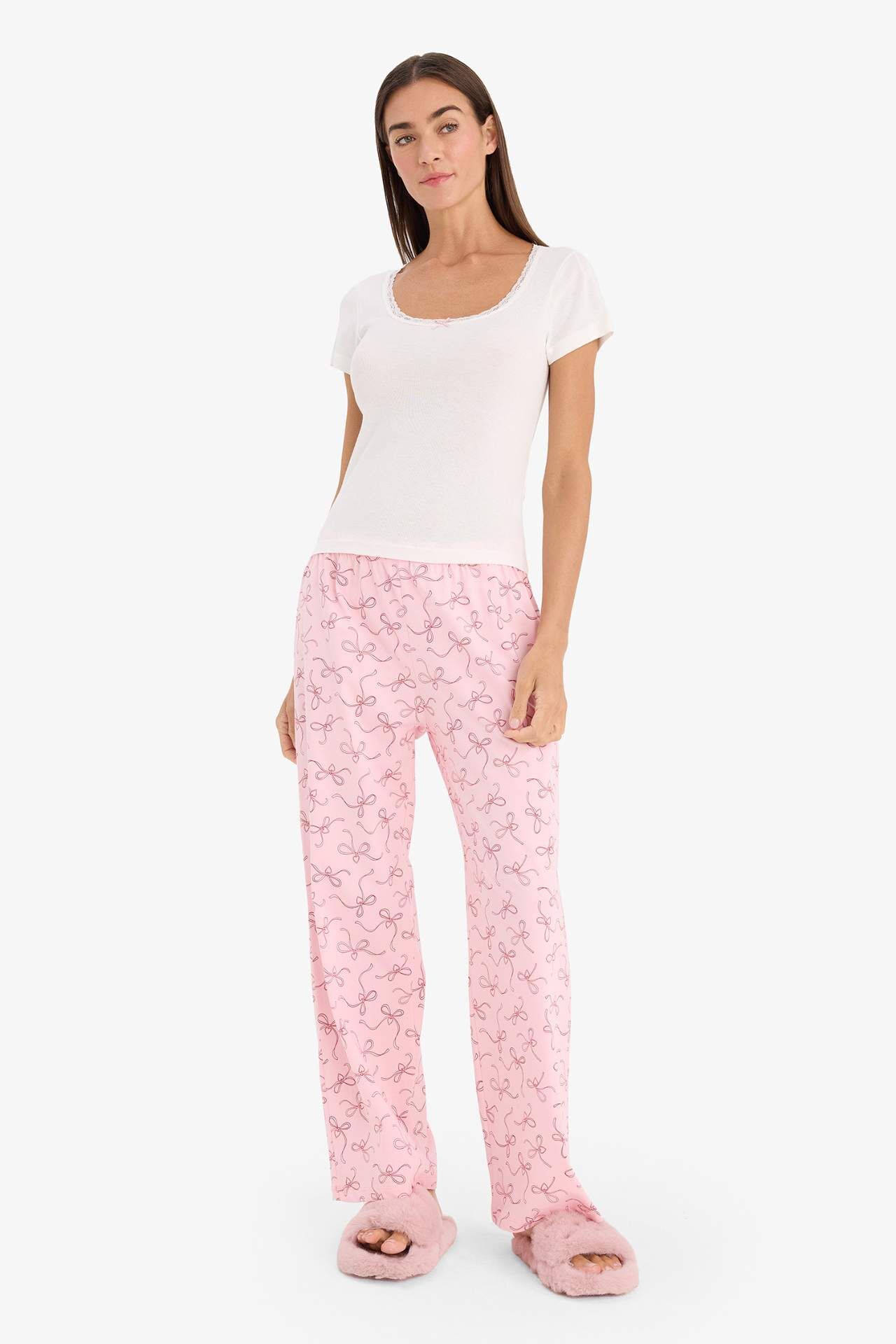 Kısa kollu üst ve alt pijama takımı, yumuşak ve hafif kumaşıyla rahat bir uyku deneyimi sunar. Günlük ev giyimi için de konforlu ve pratik bir seçenektir. Pamuk 50%,Modal 50%,Pamuk 100% Manken Bedeni: Göğüs: 89 Boy: 1,78 Basen: 92 Bel: 63