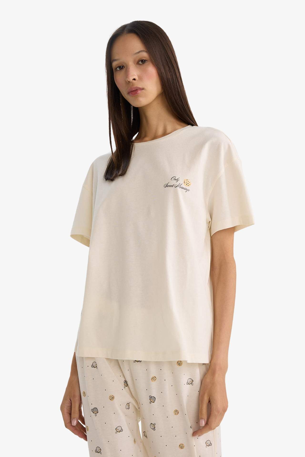 Pijama Takımı Kısa Kollu Üst Alt, yumuşak ve nefes alabilir kumaşıyla konforlu bir uyku deneyimi sunar. Şık ve rahat tasarımıyla hem evde dinlenirken hem de gece boyunca rahat hareket etmenizi sağlar. Pamuk 100%,Pamuk 100% Manken Bedeni: Göğüs: 0 Boy: 1,78 Basen: 0 Bel: 0