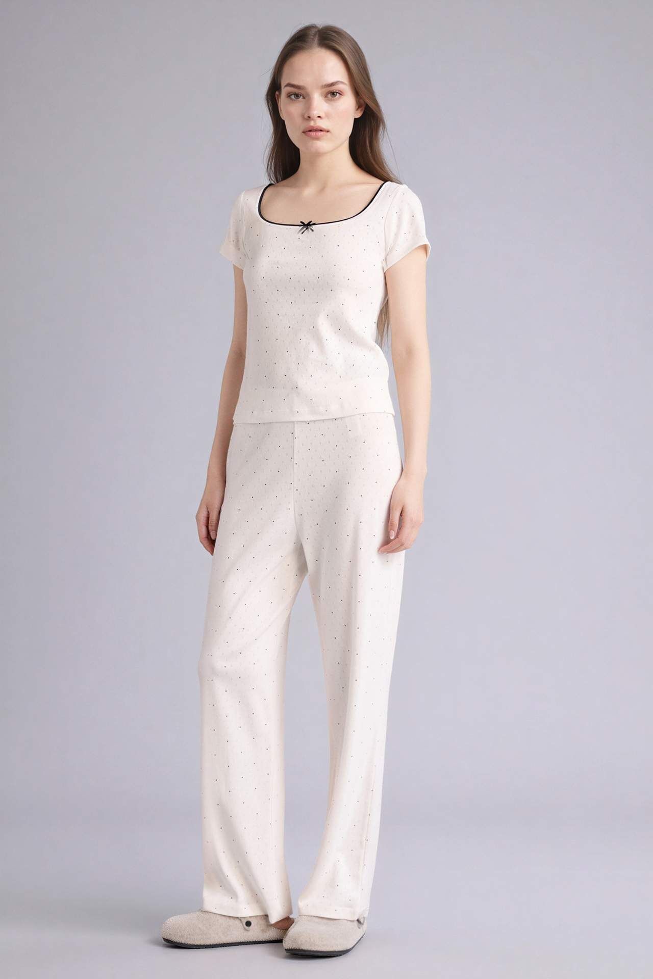 Yumuşak ve nefes alabilir kumaşıyla Pijama Takımı Üst Alt konforlu bir uyku deneyimi sunar. Şık tasarımıyla evde rahatlığınızı stilinizle birleştirir. Pamuk 100%,Pamuk 100% Manken Bedeni: Göğüs: 83 Boy: 1,81 Basen: 92 Bel: 62