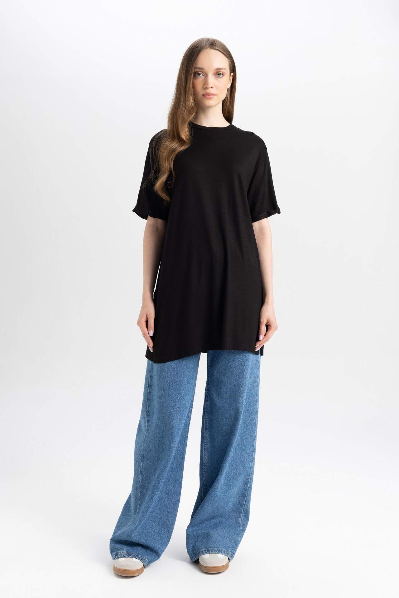Şık ve rahat Regular Fit Kısa Kollu Tişört Tunik, gardırobunuzun vazgeçilmezi olmaya aday. Kaliteli kumaşı ve şık tasarımıyla her duruma uyum sağlar. Şimdi stiline şıklık kat! Elastan 3%,Viskoz 97%,Elastan 3%,Viskoz 97% Manken Bedeni: Göğüs: 78 Boy: 1,74 Basen: 89 Bel: 60