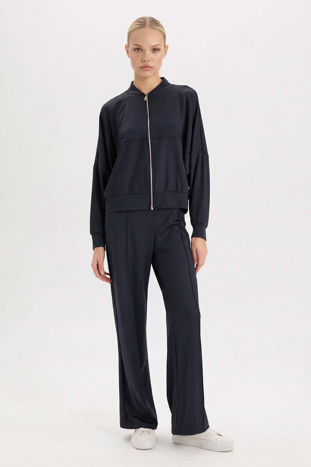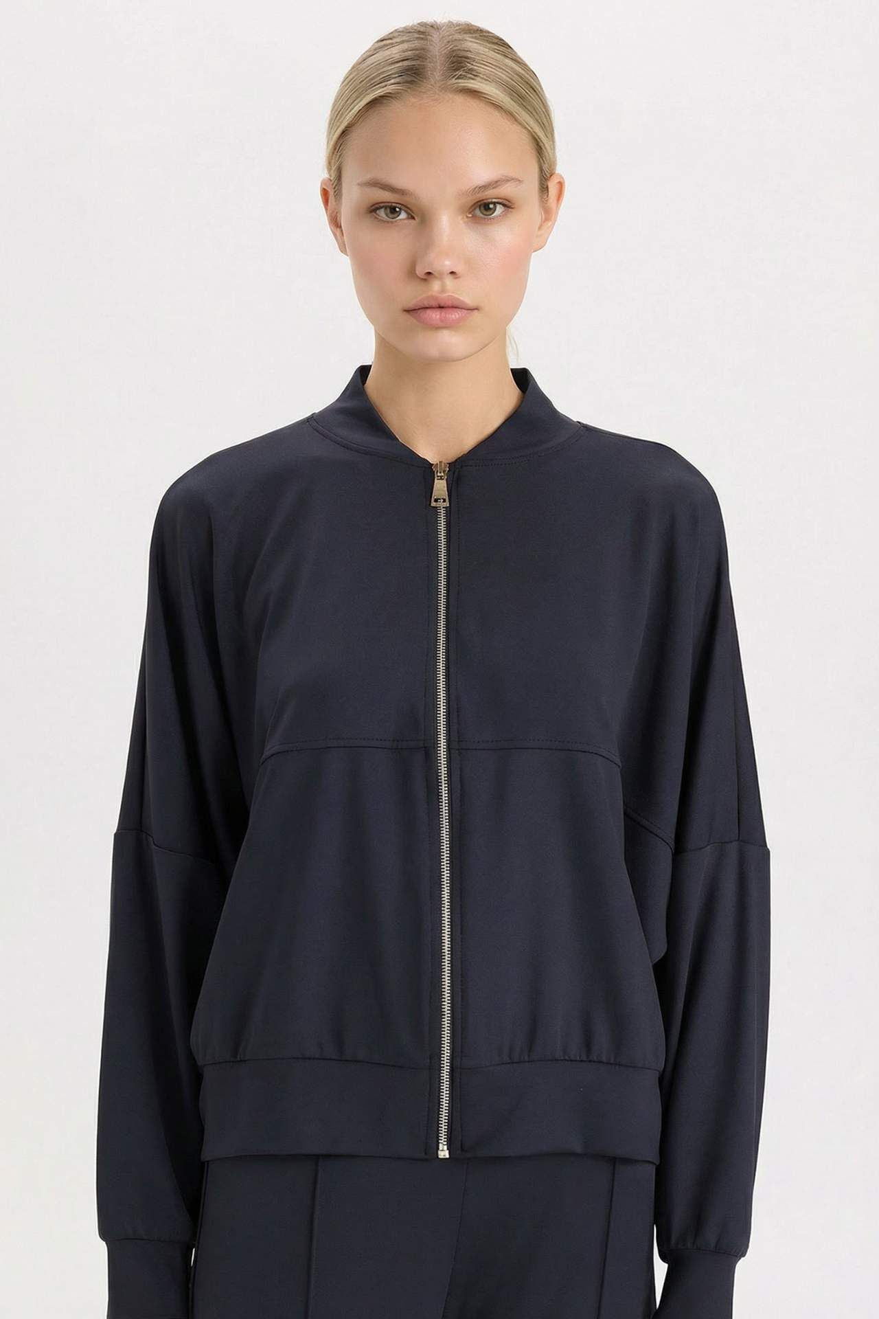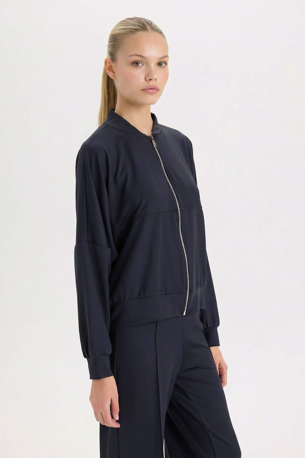 DeFacto Regular Fit Kolej Yaka Fermuar Kapamalı Cepli Basic Düz Bomber Hırka