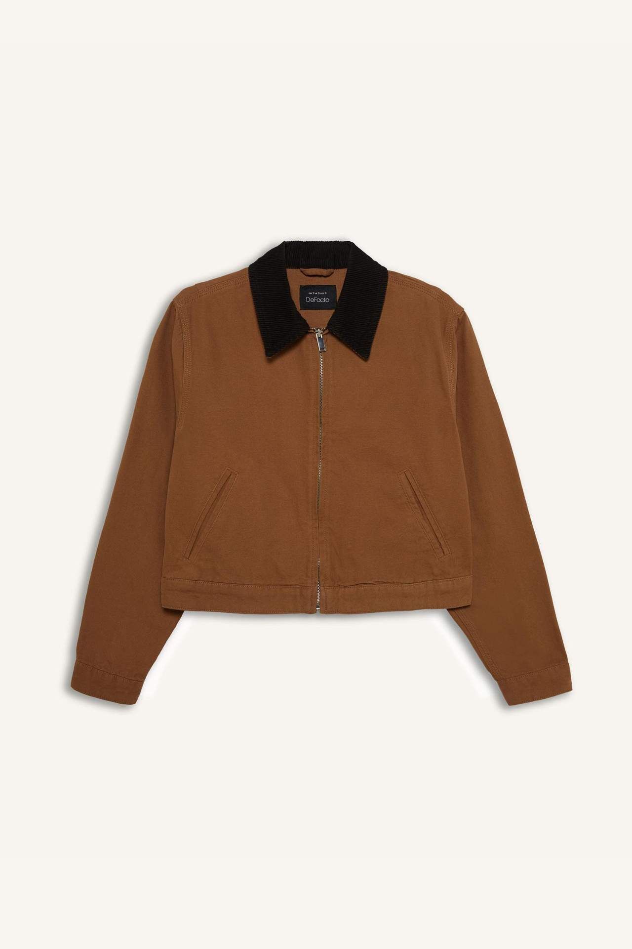 DeFacto Regular Fit Kontrast Yakalı Fermuarlı Cepli Pamuklu Ceket Mont