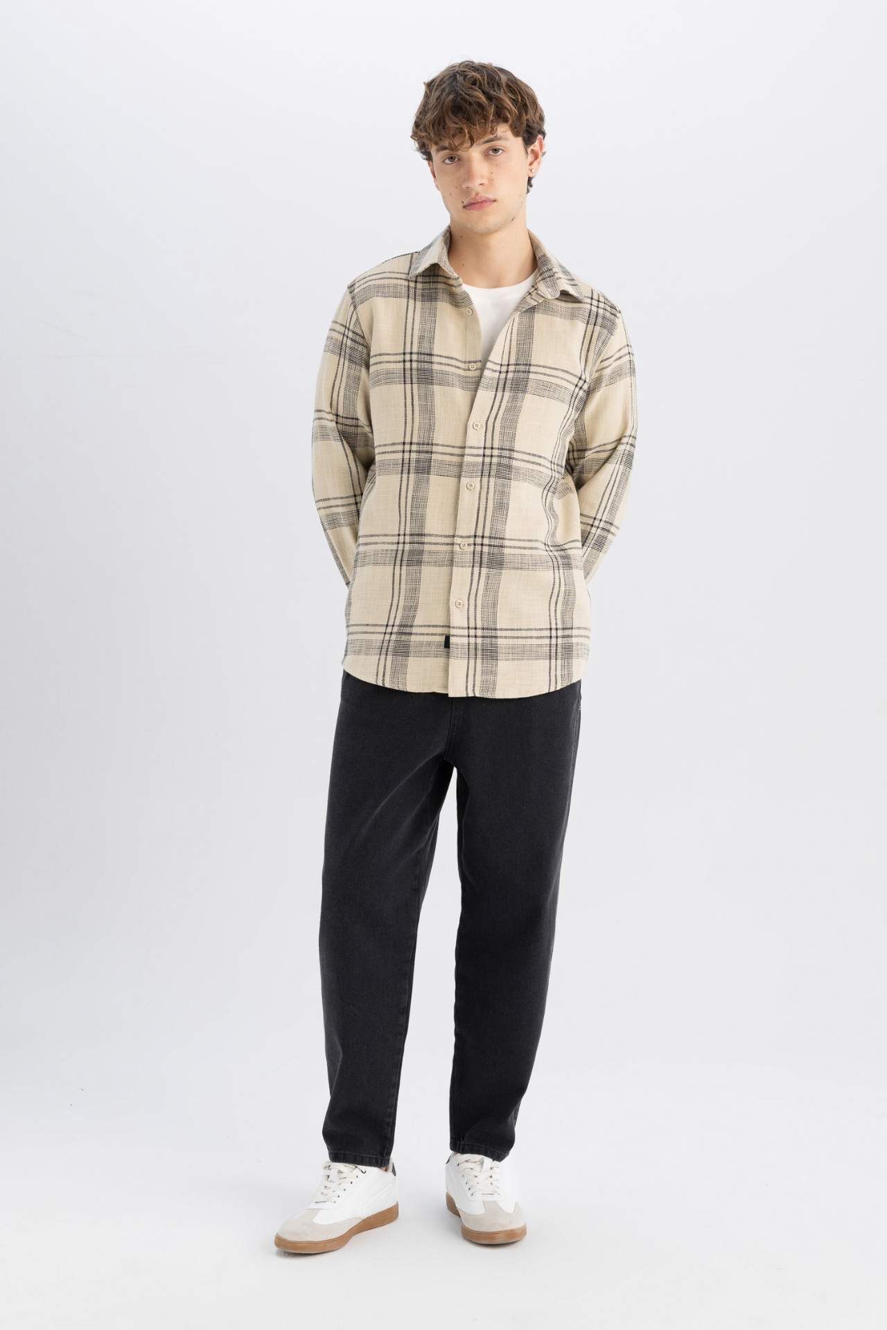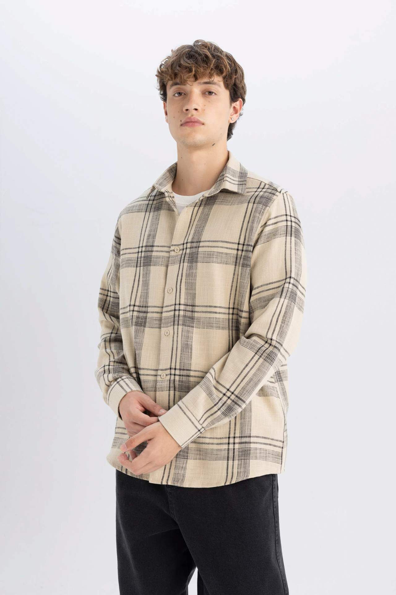 DeFacto Regular Fit Pamuklu Kareli Uzun Kollu Gömlek