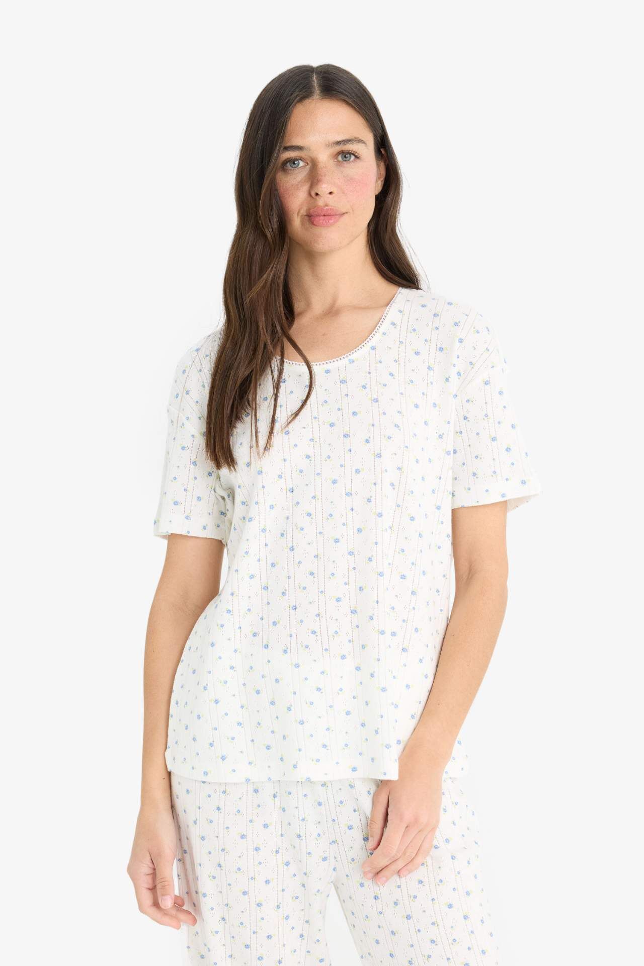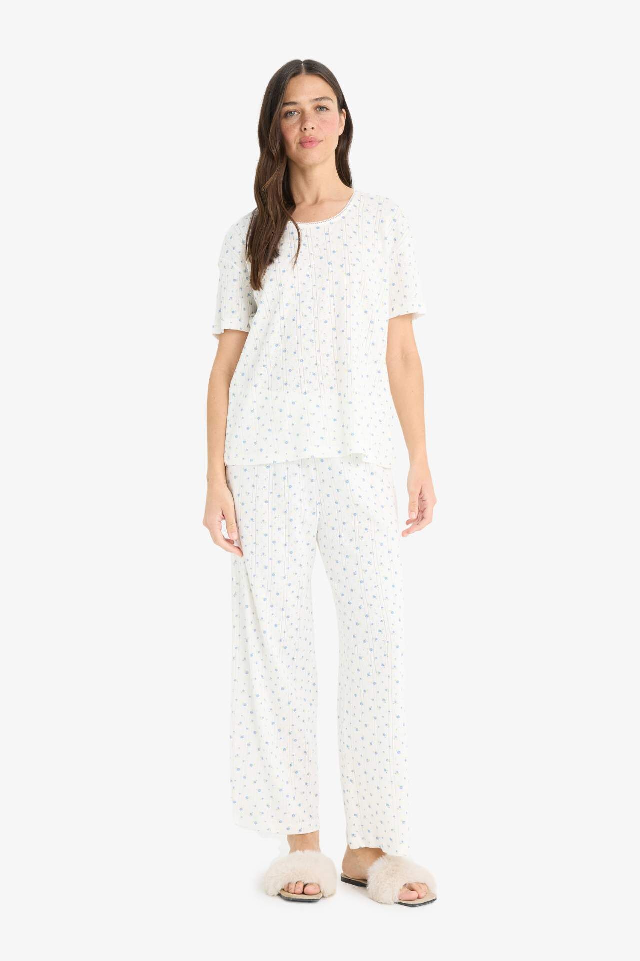 DeFacto Regular Fit Pijama Takım Kısa Kollu Pijama Üstü Esnek Belli Uzun Pijama Altı-Fall in Love
