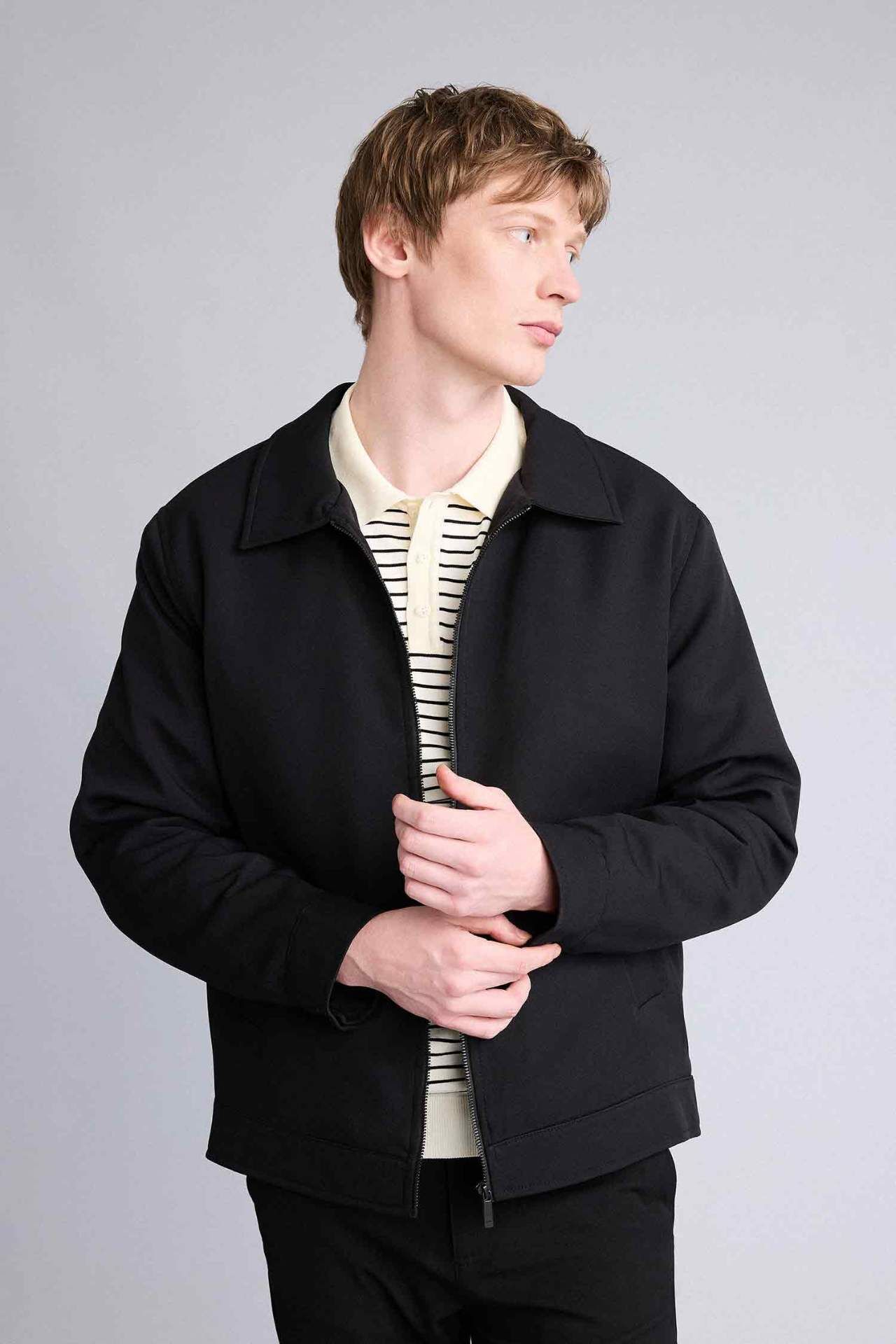 Regular Fıt Polo Yaka Astarlı Fermuarlı Mont