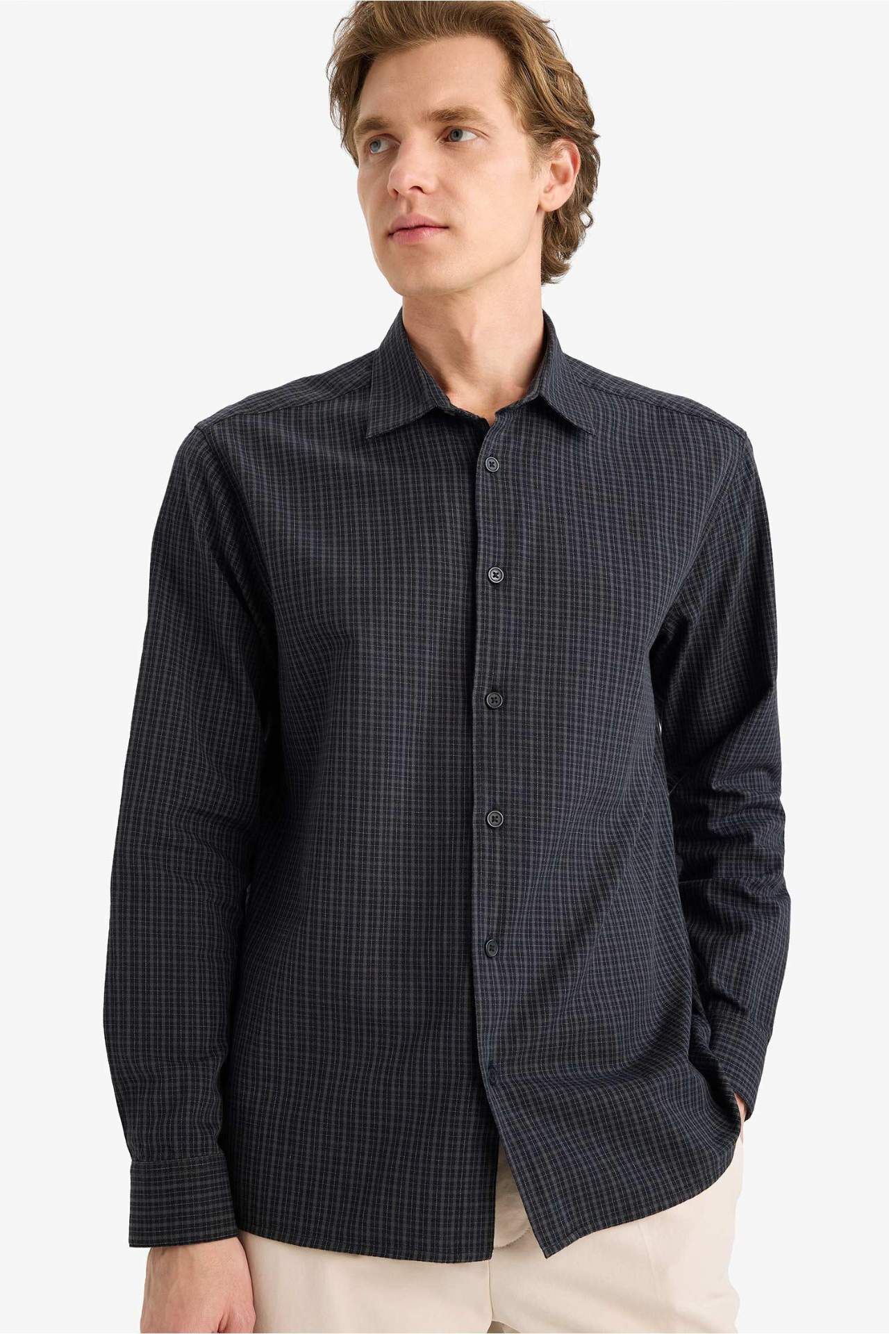 Regular Fit Polo Yaka Baskılı Uzun Kollu Gömlek