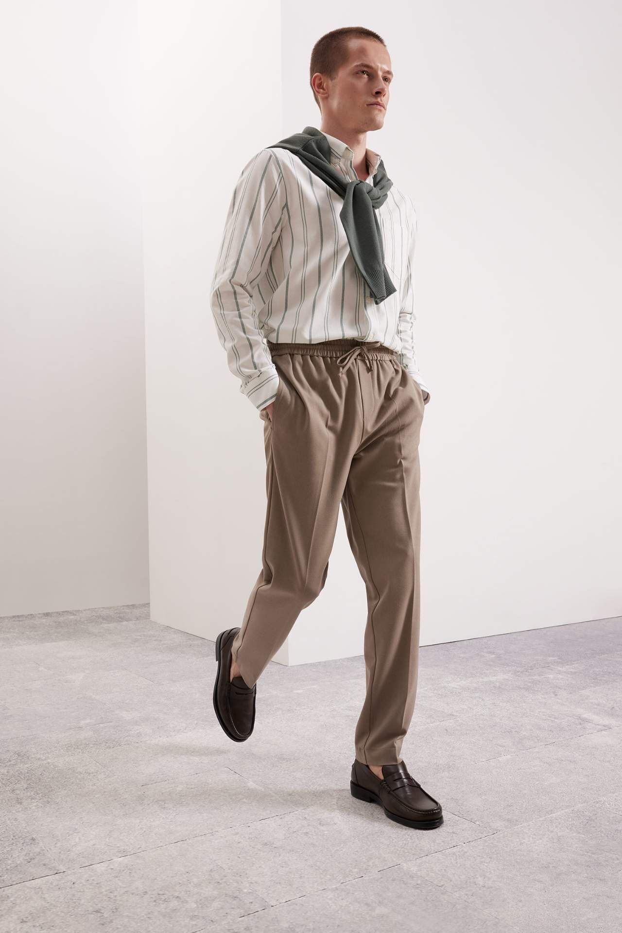 DeFactoFit Regular Fit Polo Yaka Çizgili Oxford Uzun Kollu Gömlek