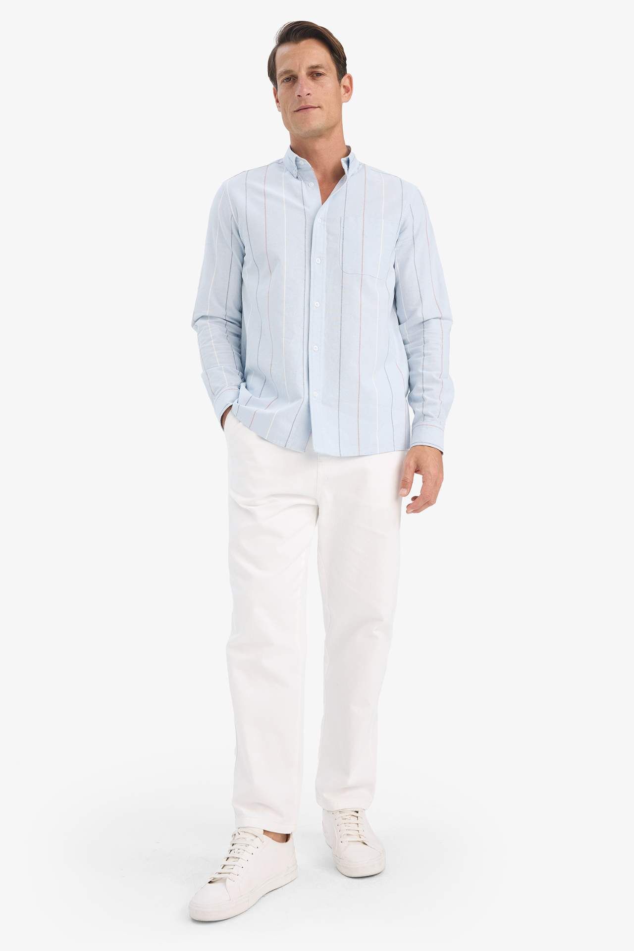 DeFacto Regular Fit Polo Yaka Çizgili Pamuklu Uzun Kollu Gömlek
