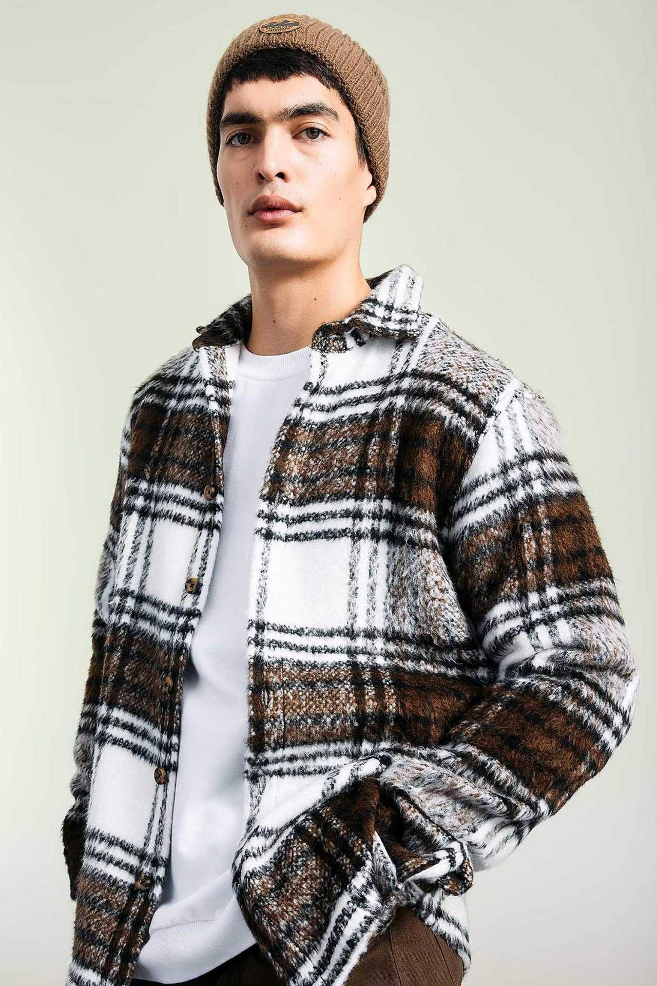 DeFacto Regular Fit Polo Yaka Ekose Desenli Gömlek Ceket