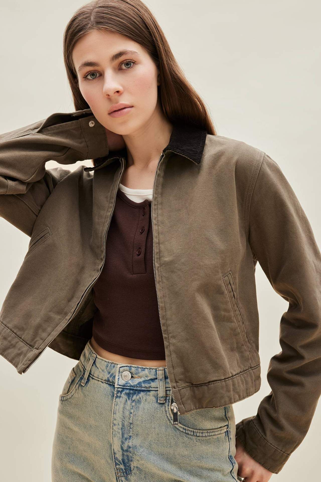 Yetişkin Dış Giyim için ideal bir seçenek olan haki renkli, pamuklu polo yaka mont. Yaz mevsiminde rahatlıkla kullanabileceğiniz regular fit kesimiyle stilinizi tamamlayacak temel bir parça. Pamuk 100%,Pamuk 100%,Pamuk 100%,Pamuk 100%,Pamuk 100%