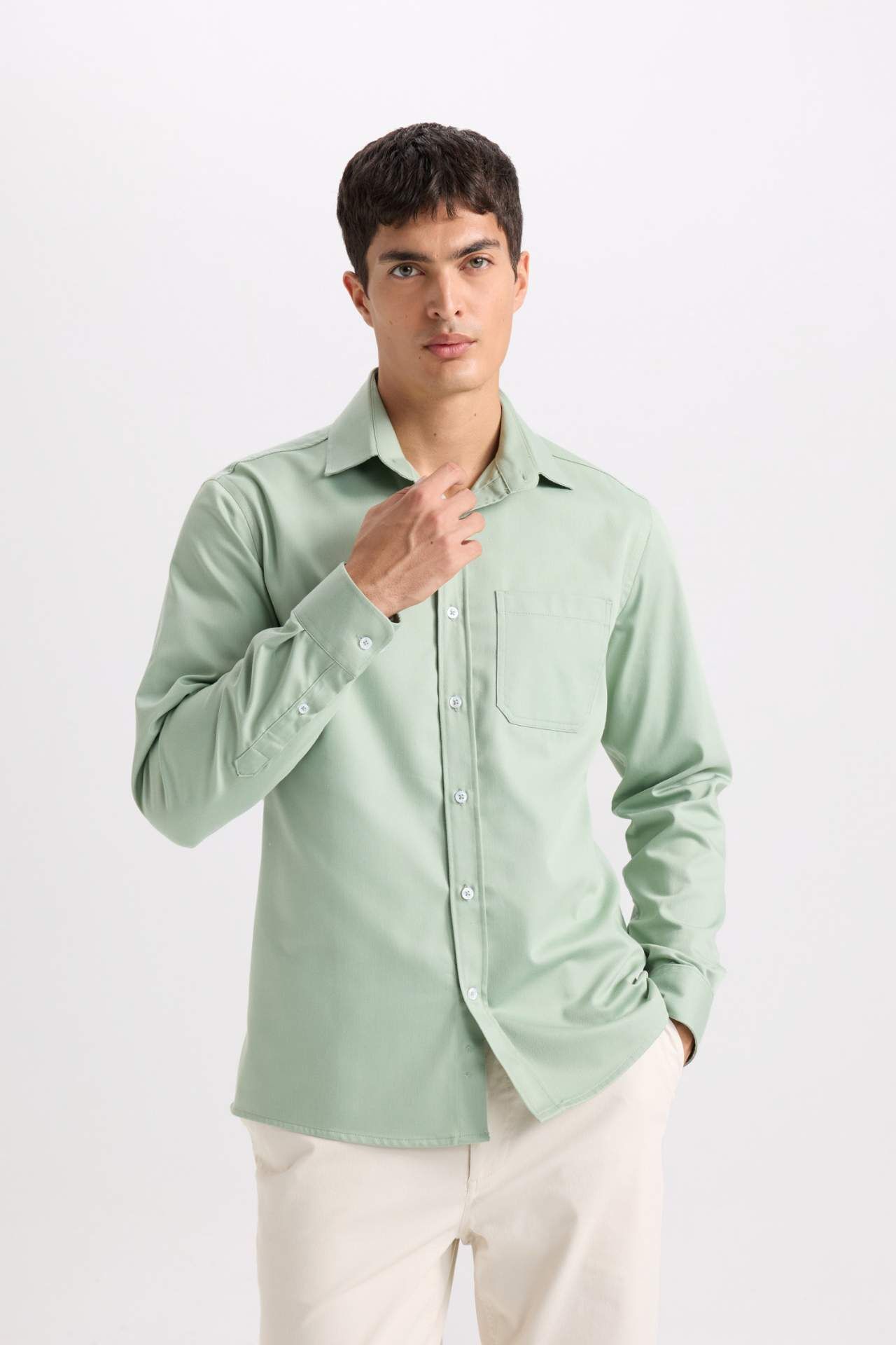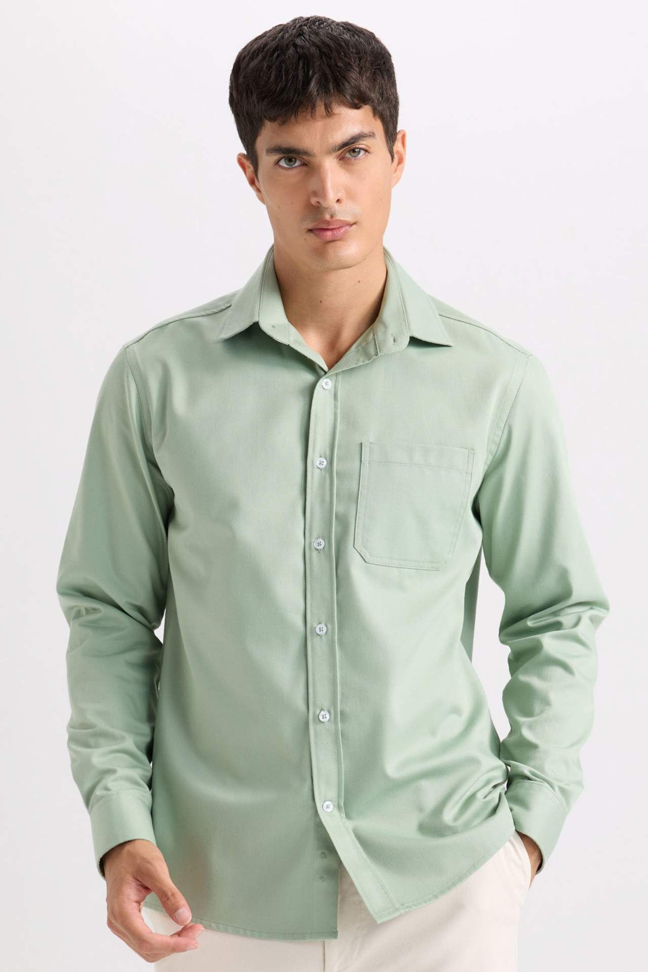 DeFacto Regular Fit Polo Yaka Gabardin Uzun Kollu Gömlek D4934AX24AUKH434